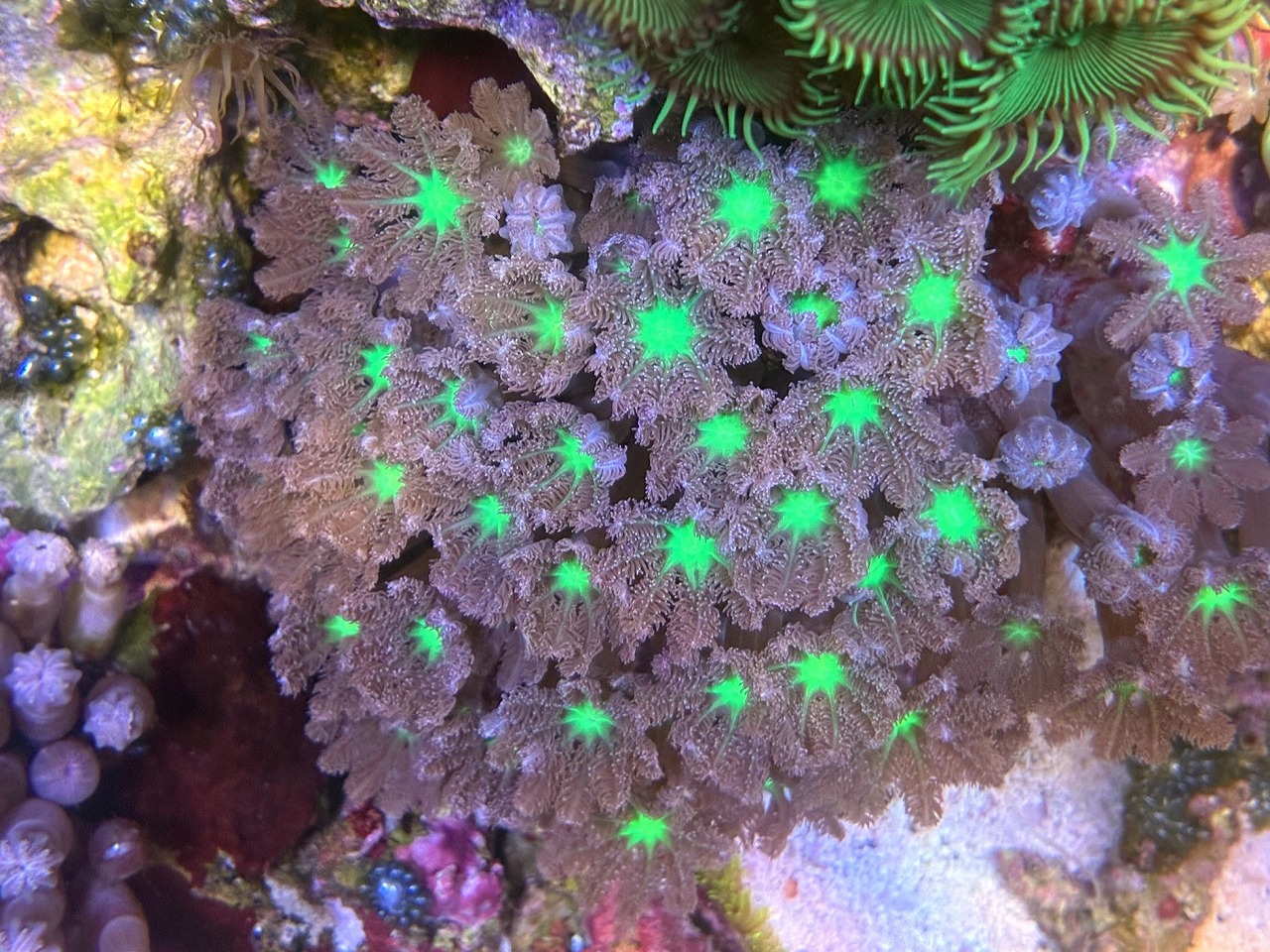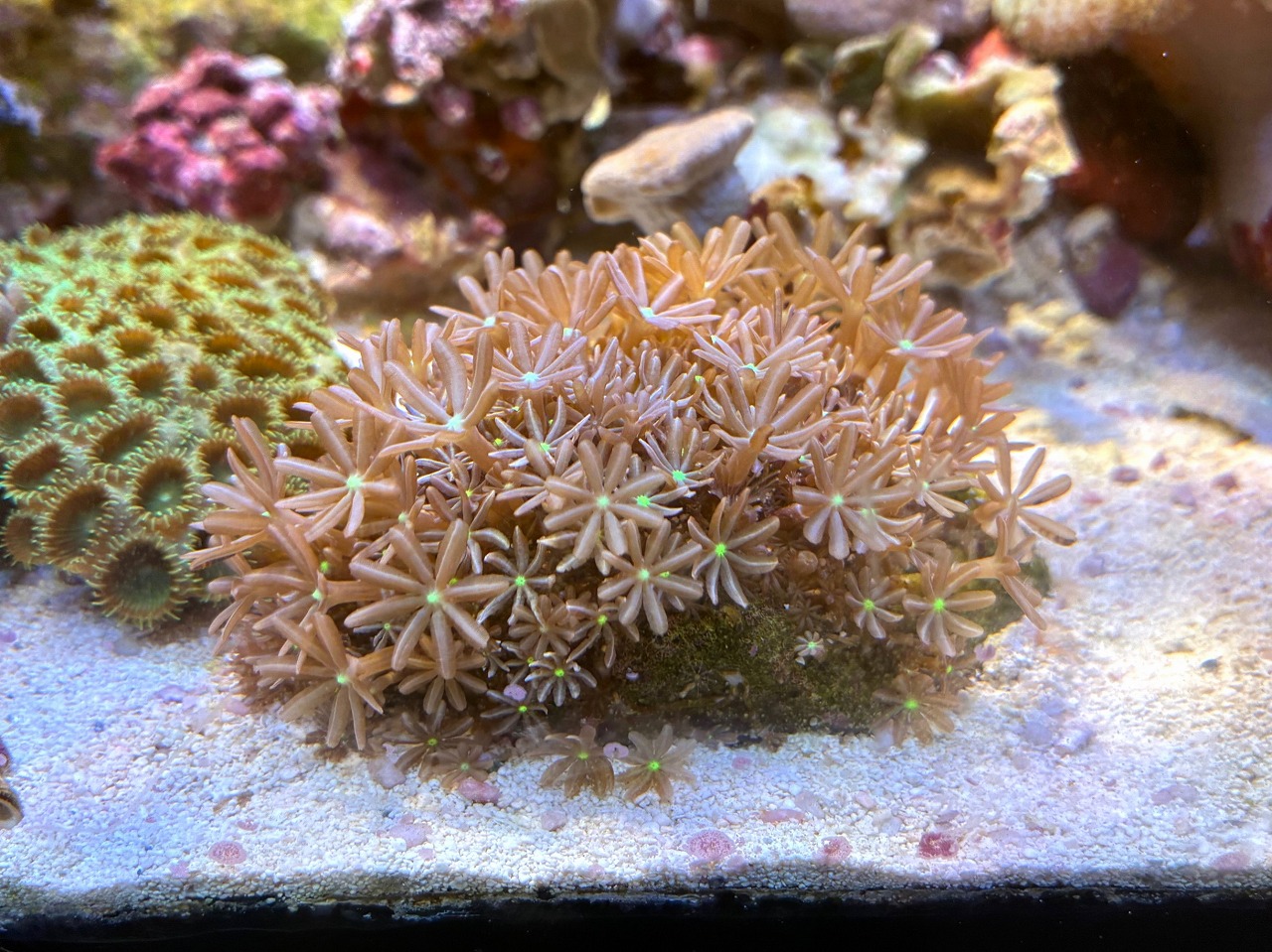 グリーン系の人気が高い印象のハナサンゴですが、この系統の色も良い!