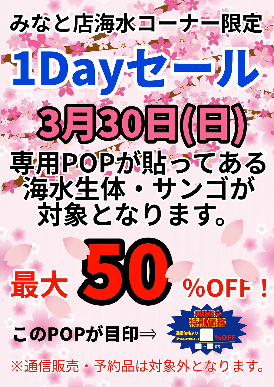 専用ポップが貼ってある海水生体・サンゴが最大で50%OFF!!