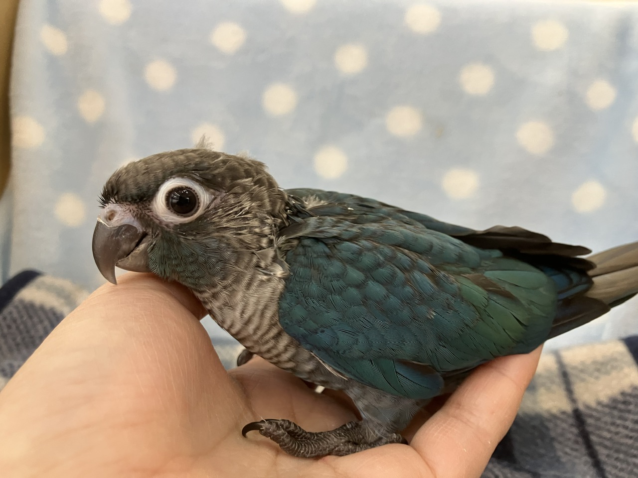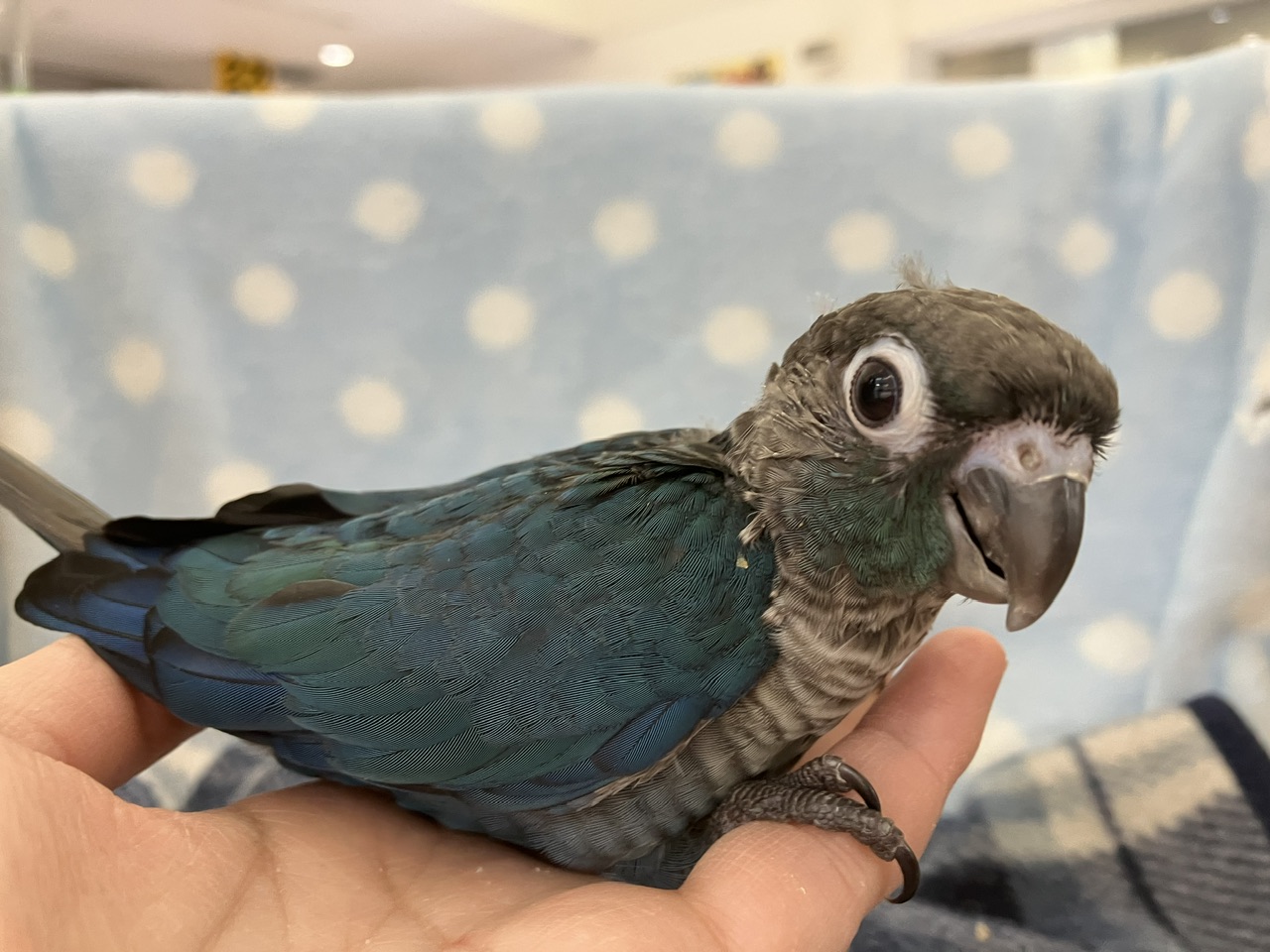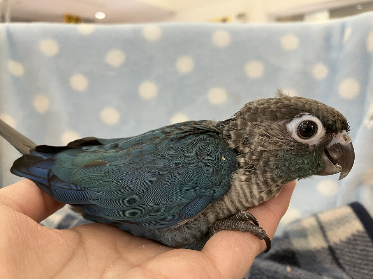 青緑のグラデーションがかった羽が美しい!!今回の便の爽やか系カラー担当です🩵✨