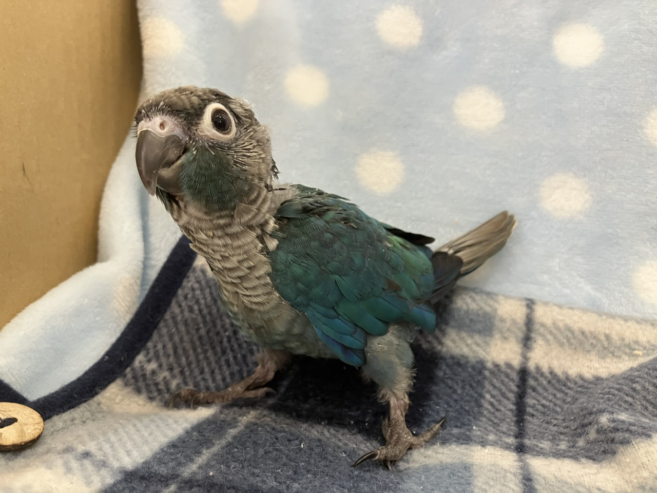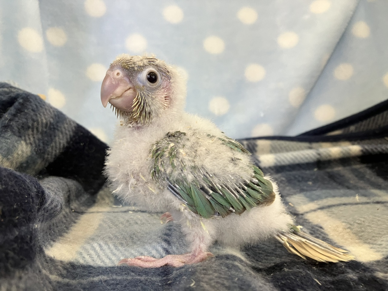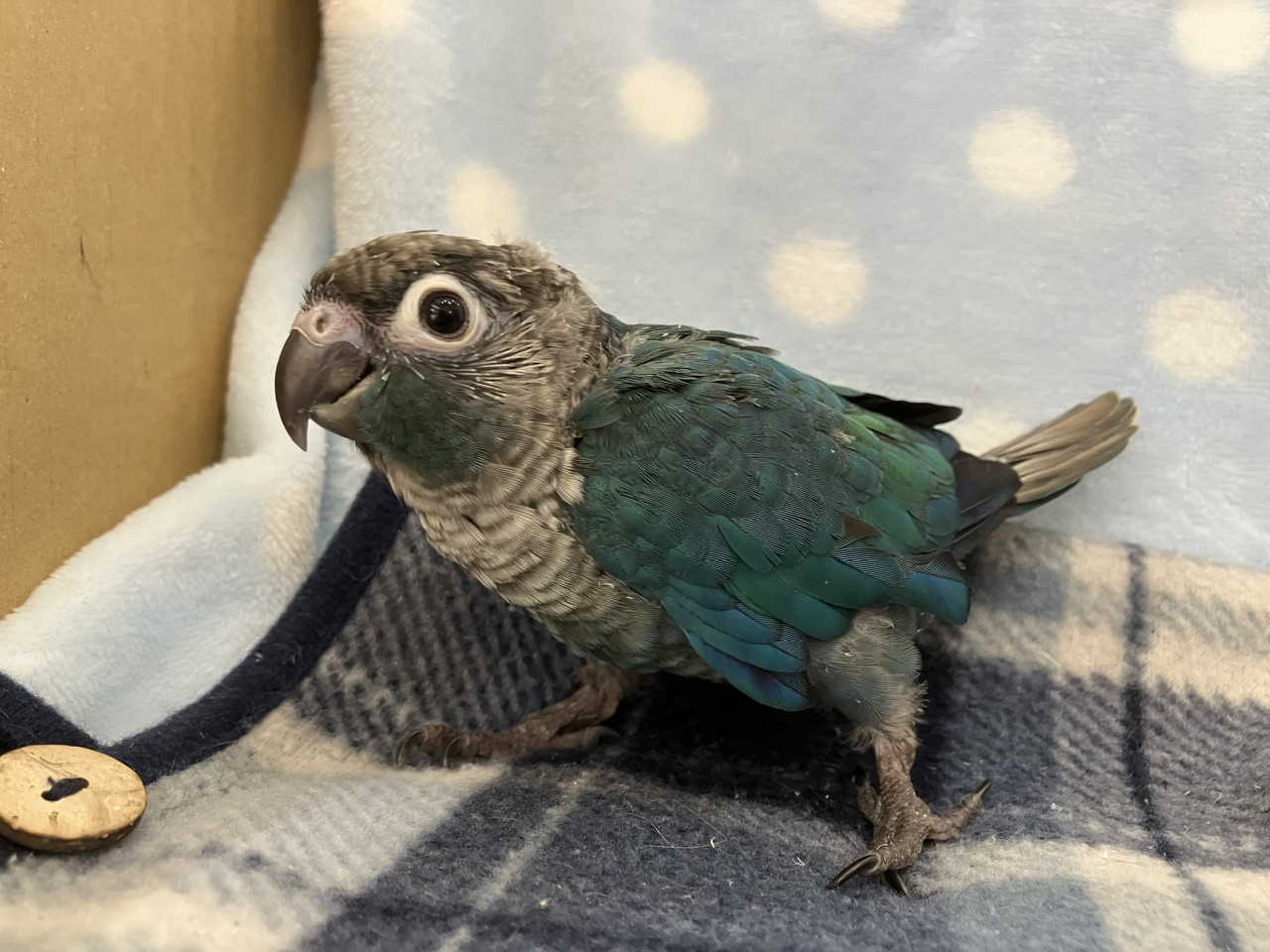 青緑のグラデーションがかった羽が美しい!!今回の便の爽やか系カラー担当です🩵✨