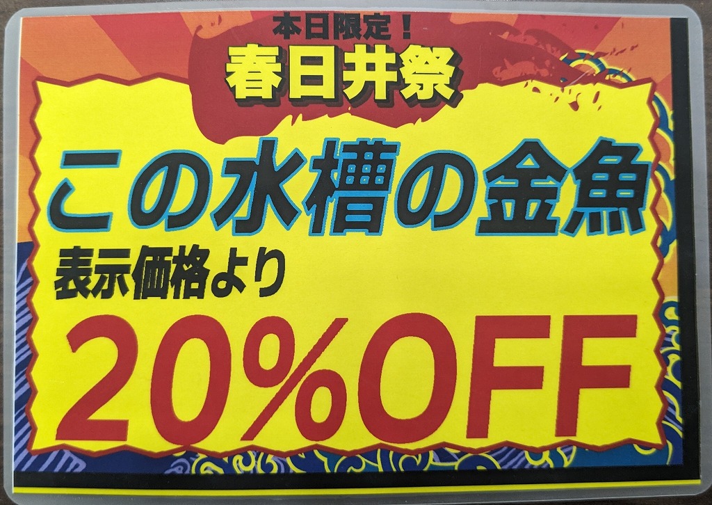 上記其の壱~其の参の水槽が20%OFF対象となります。