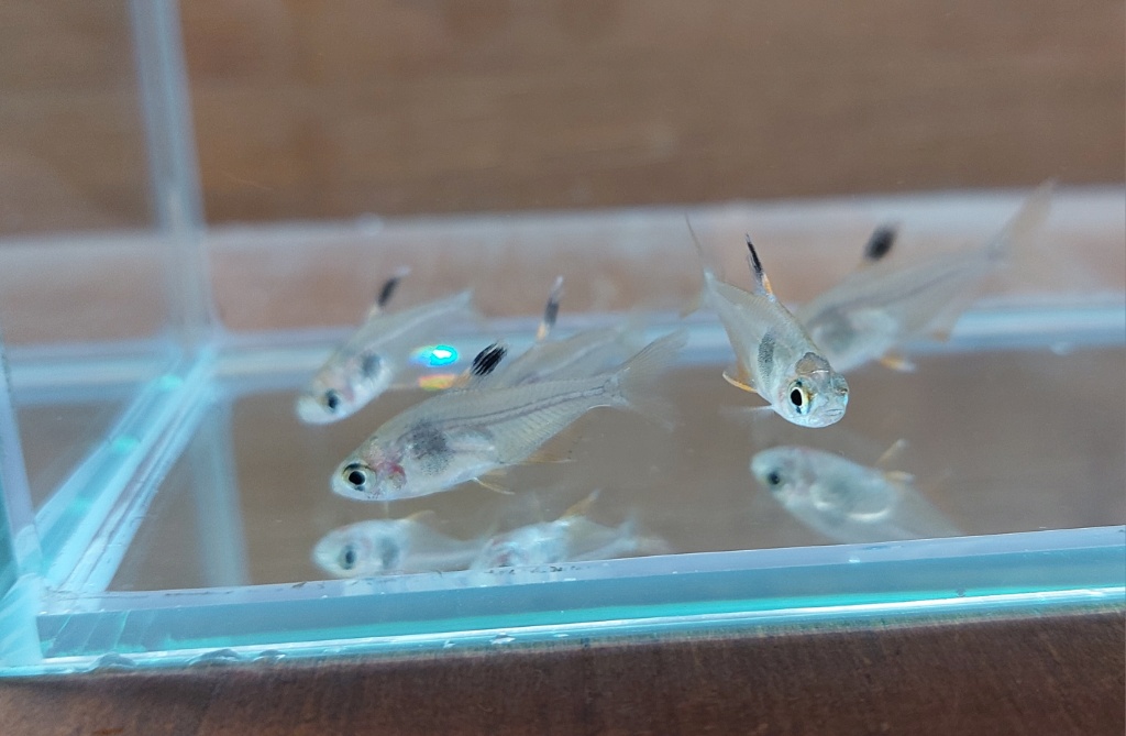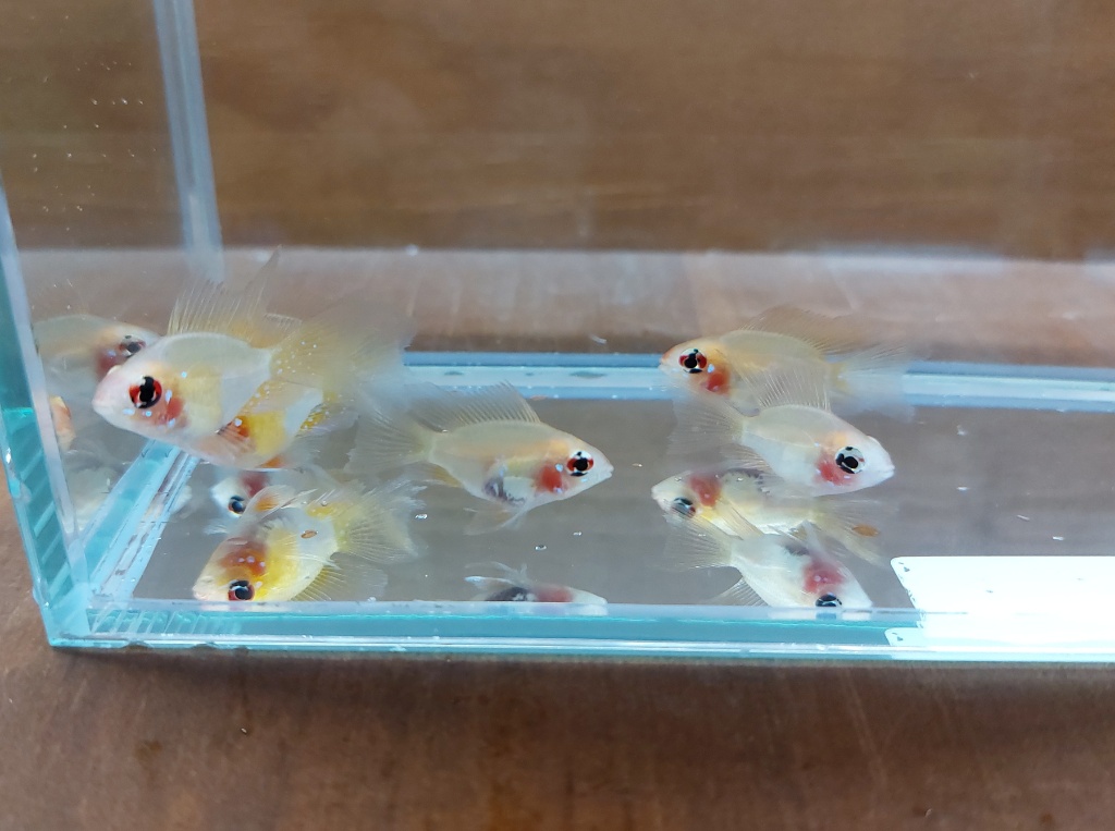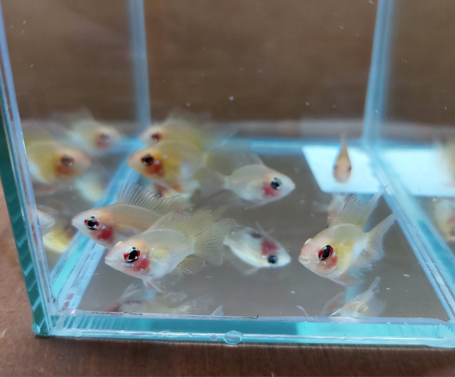 透明鱗+ショートボディ+黄変のラミレジィ。中にいくつかロングフィンの個体も!
