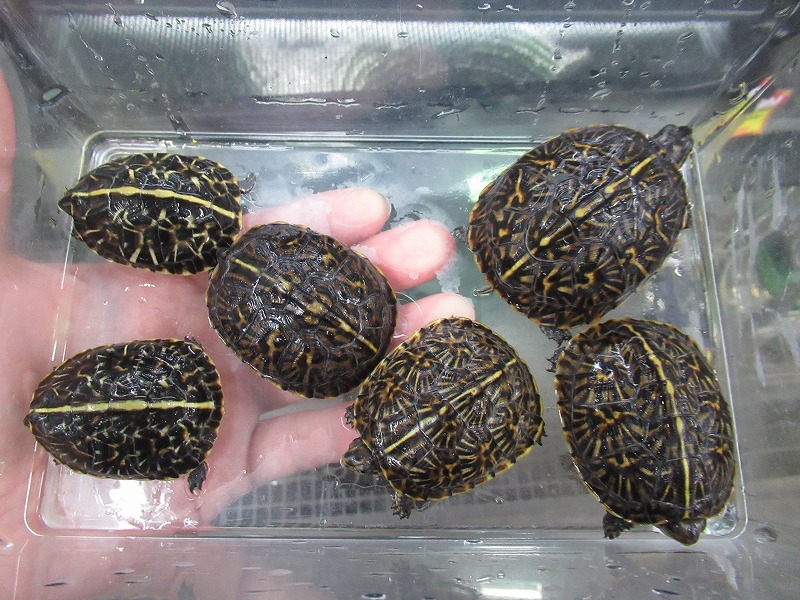 前回好評だった欧州血統のフロリダ、お代わり来ました。今回は少し育って柄の特徴も出てきた個体ばかり。カロリナハコガメは国内セレクトブリードが全盛の今、あえてのEUラインも有ると思います。