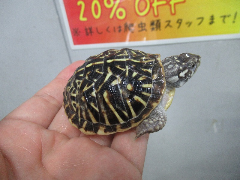 昨今、絶大な人気を誇るカロリナハコガメ各亜種とは趣の異なるアメハコで、好みも大きく別れる種かも。ブリーダーさん毎に血統別に入ってくるカロリナハコガメ各亜種と比べ入荷も少なめ。生後半年近く経ったカッチリサイズで綺麗な放射柄も目立ってきました。