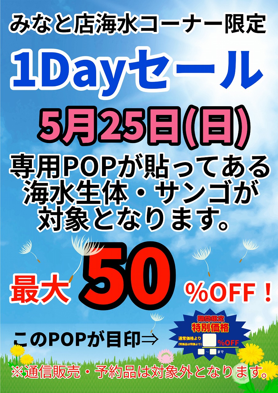 次の日曜日(5/25)は『1Dayセール』!