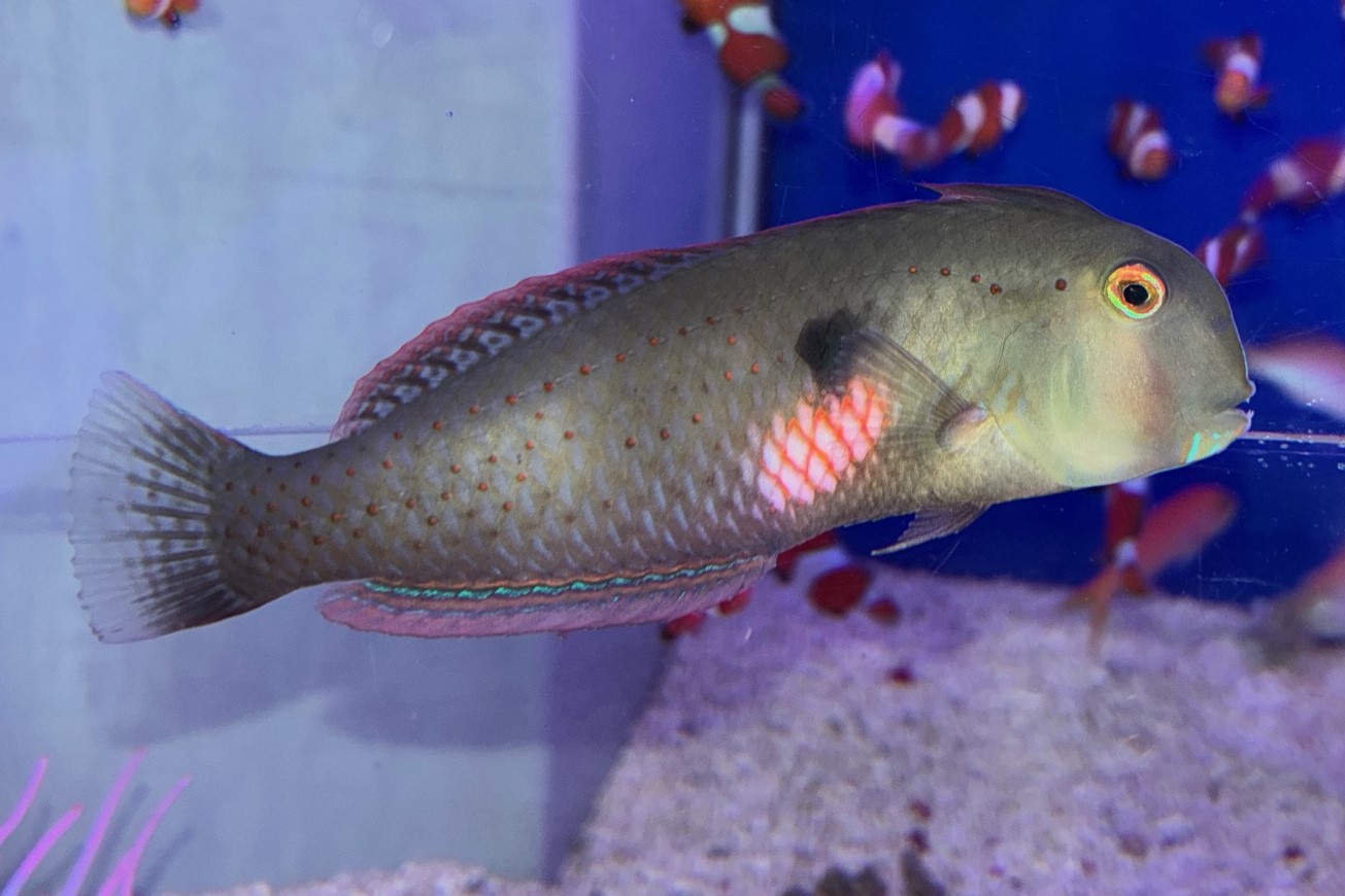 テンス系のベラの仲間なので砂に潜るのですが、たまに体半分が砂から出たままになっていたりして見ていて可愛らしい魚になります♪