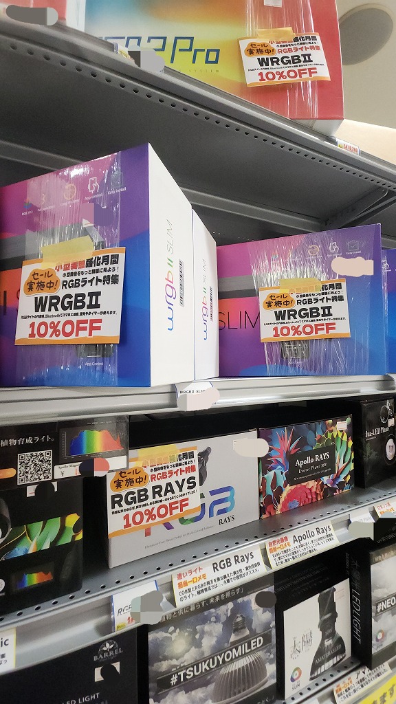 取り扱いのあるRGBライトが全品10%OFF!お値打ち品や、RGBのCOBタイプなどRGBといえど色々ございます。ストック商品のほとんどは展示で使用しておりますので、是非実物を見比べて下さい!