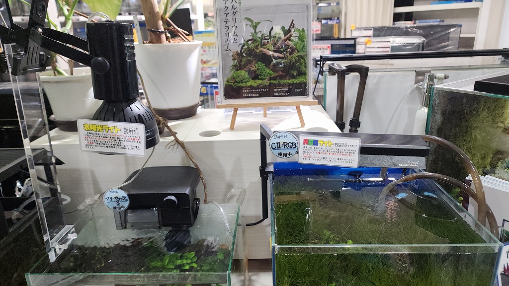 赤・青・緑色は水景の中でも特に目が寄せられることの多い色だと思います。その三原色をより鮮烈に魅せてくれるのがRGBライト!同じ水槽が明らかに色鮮やかに見えます。今の水槽の魅力を更に磨き上げるメイクアップ、いかがでしょうか。