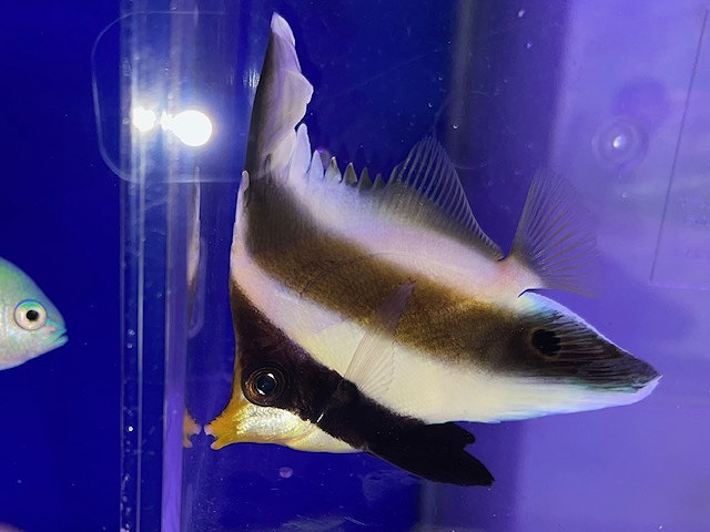 インド洋に生息するフウライチョウチョウウオによく似た種。フウライチョウよりもお尻の黒い面積が多いのが特徴!既にホワイトシュリンプを食べてくれています!