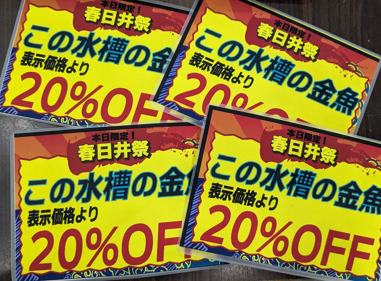 対象魚・対象の水槽には下記のPOPを貼っております。 お越しの際はぜひチェックしてやってください☆