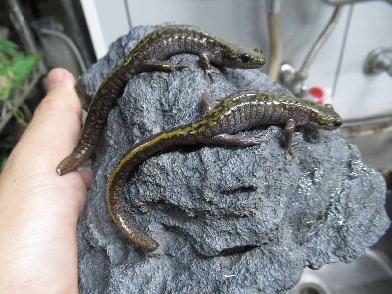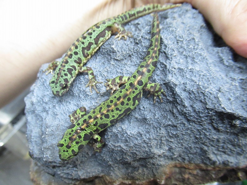 アルプスミヤマイモリ 涼し気な美しい体色のアルペンニュート。まだまだチビサイズです。