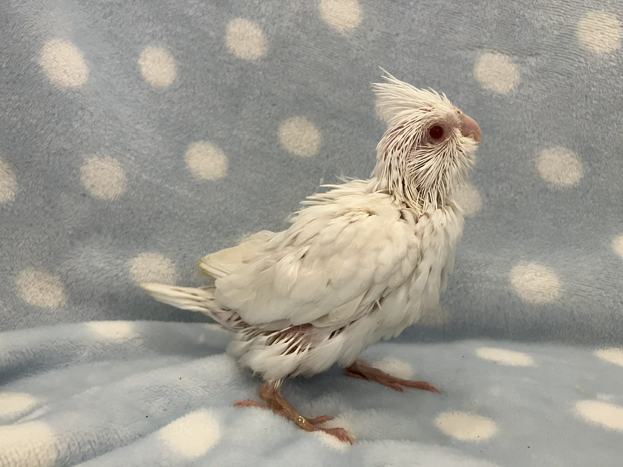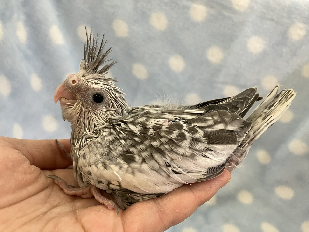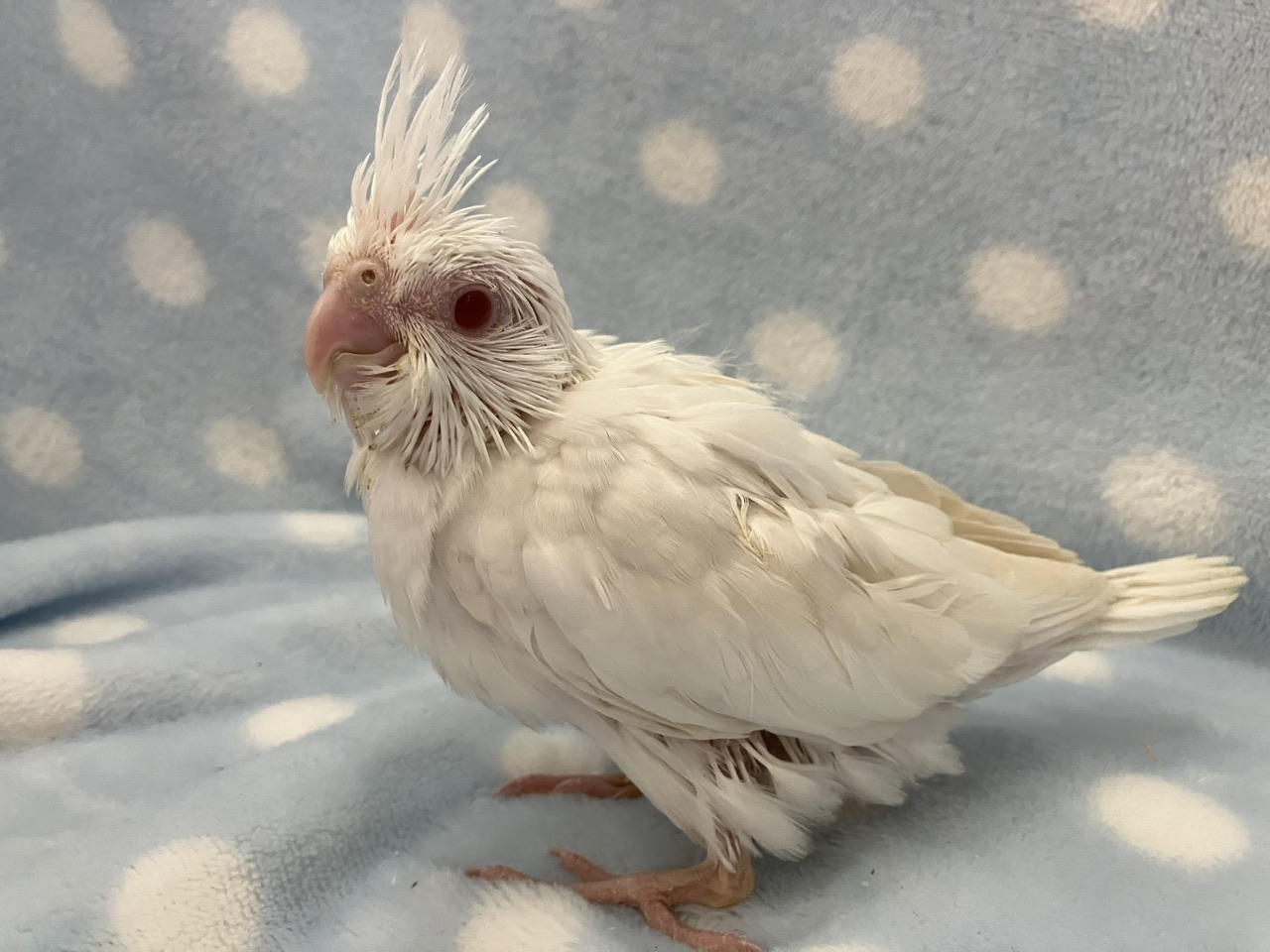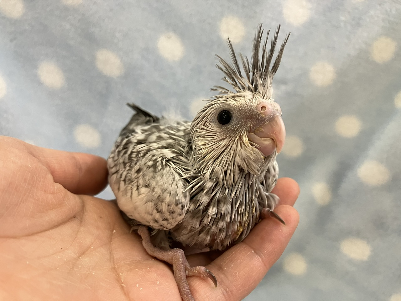 頭の冠羽はれっきとしたオウムたる証!!この羽を上げ下げすることで感情表現をしているようで、コミュニケーションをとるうえで重要なバロメーターにもなってくれますよ!!