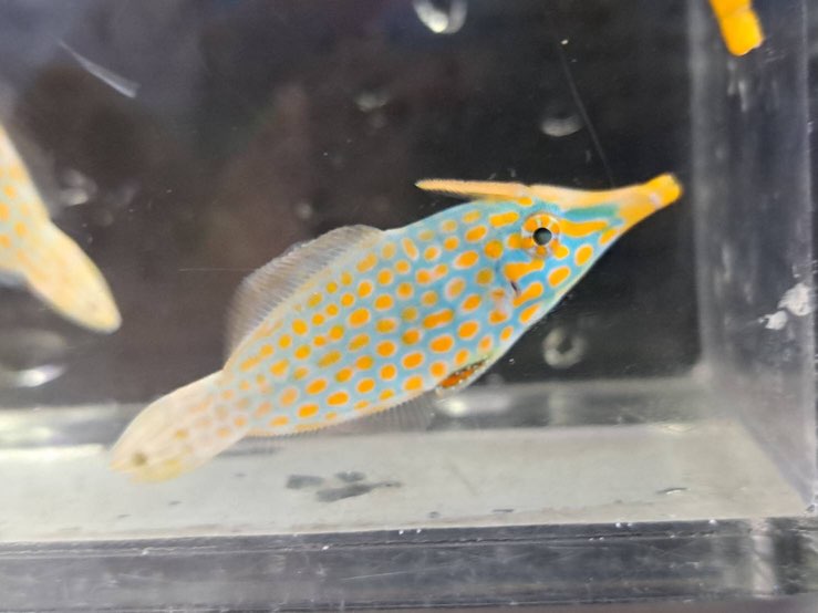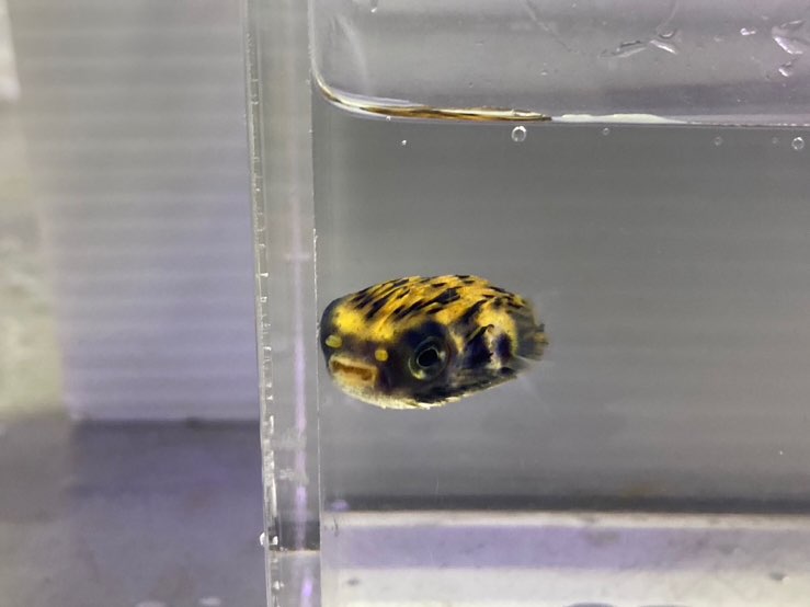 まだ小さいので普通のハリセンボンとの差はわかりにくいですが…明らかに雰囲気は違いますね。特に目の虹彩などは小さくてもノーマルとは違いがはっきりしているようです。