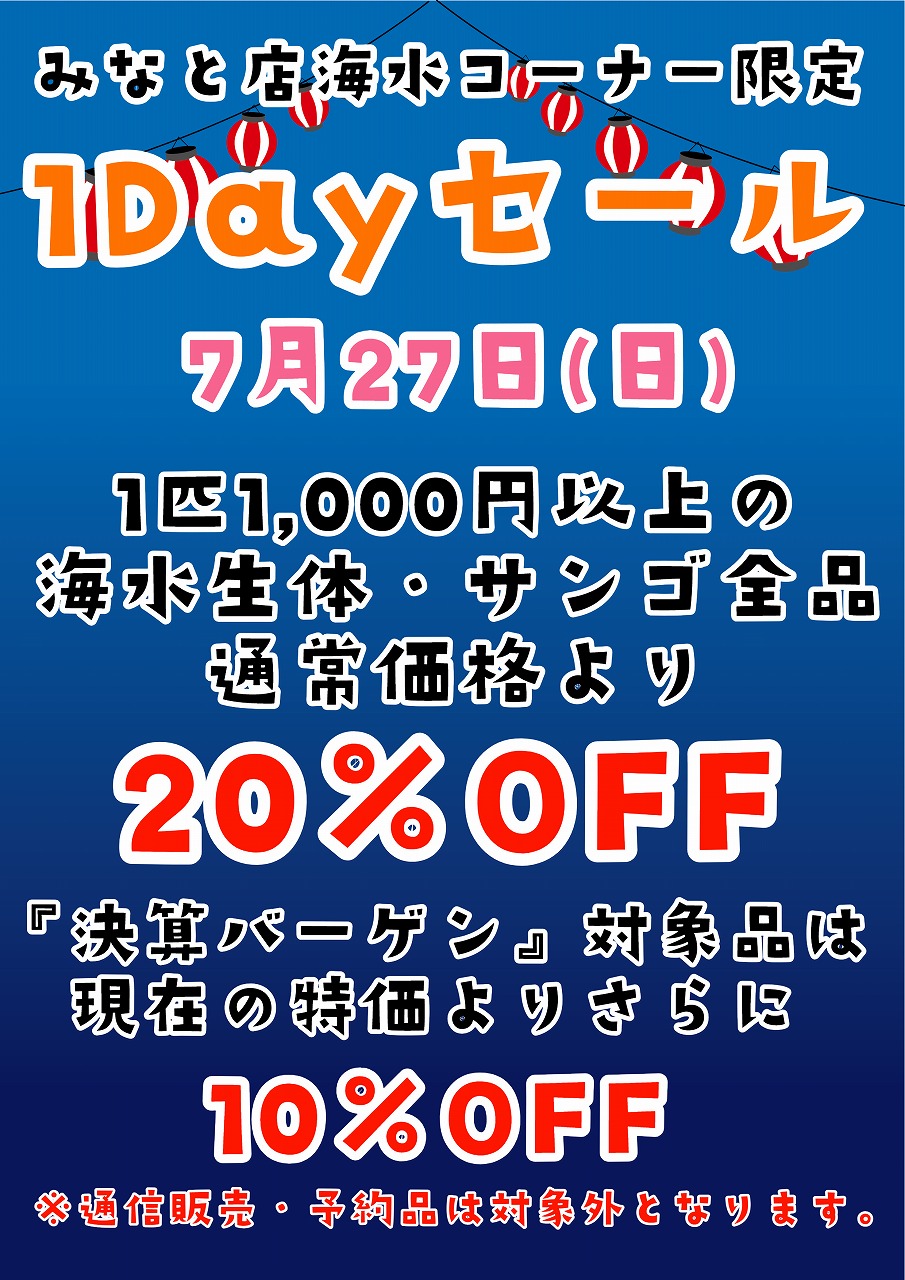 【今週日曜日は1Dayセール開催します!!】