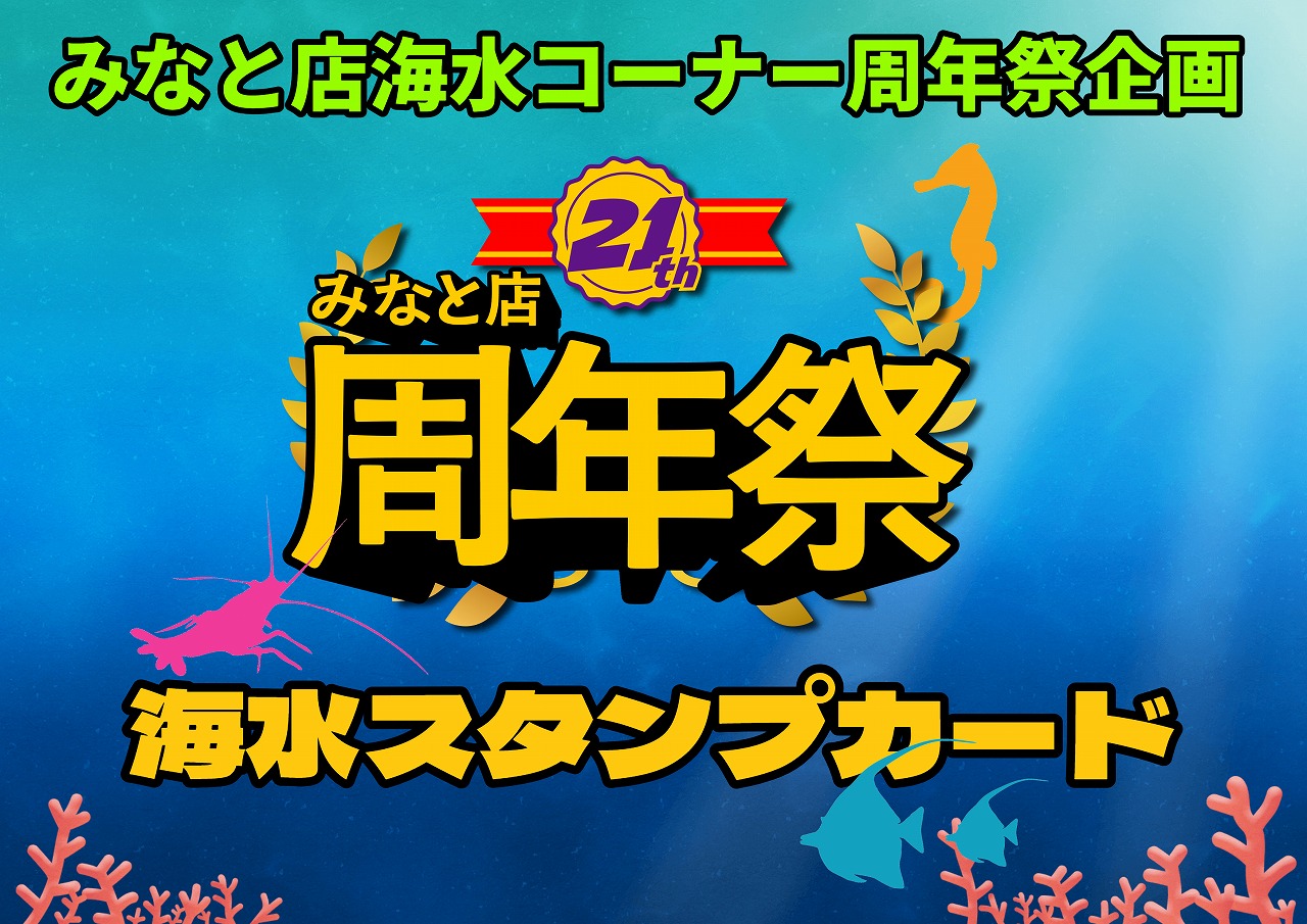 さらに、イベント当日に海水生体(サンゴ含む)を3,000円以上ご購入いただいた場合、現在配布中の『周年祭スタンプカード』に特別な高ポイントのスタンプを押印いたします!