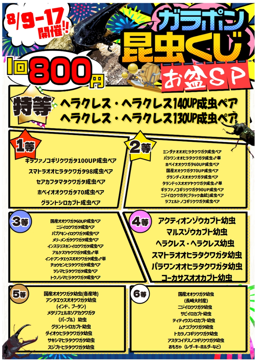 【春日井ぺけっと・昆虫】ガラポン昆虫くじお盆SP開催中!!【リスト更新】