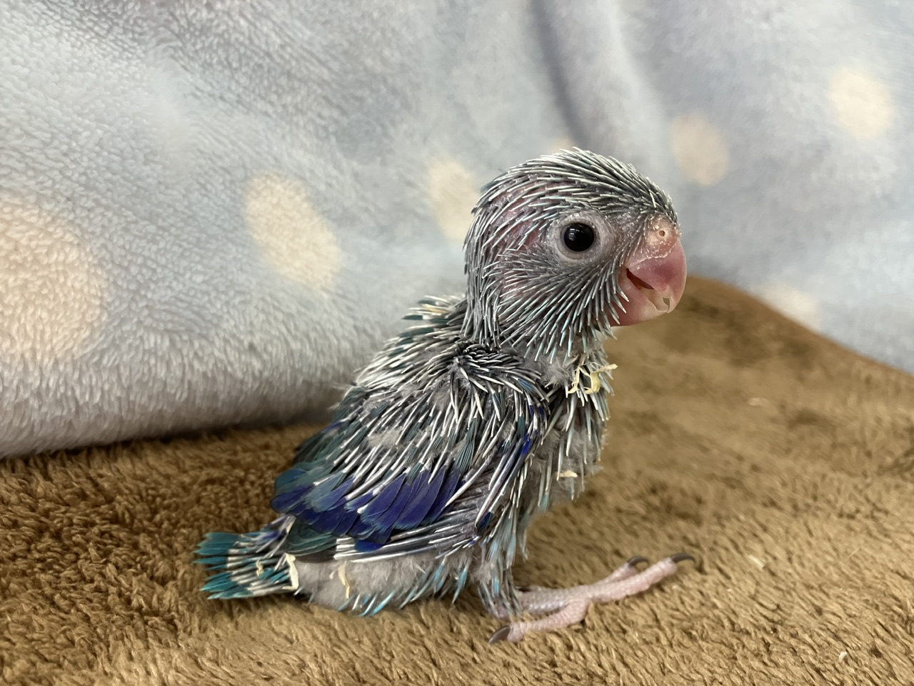 今回きた2羽はすでに腰や目の周りに瑠璃色の羽が見えており、どちらも男の子です!!ヒナのうちから性別がハッキリわかるので、好みの子をより絞り込みやすいのもマメならではですよね〜💡