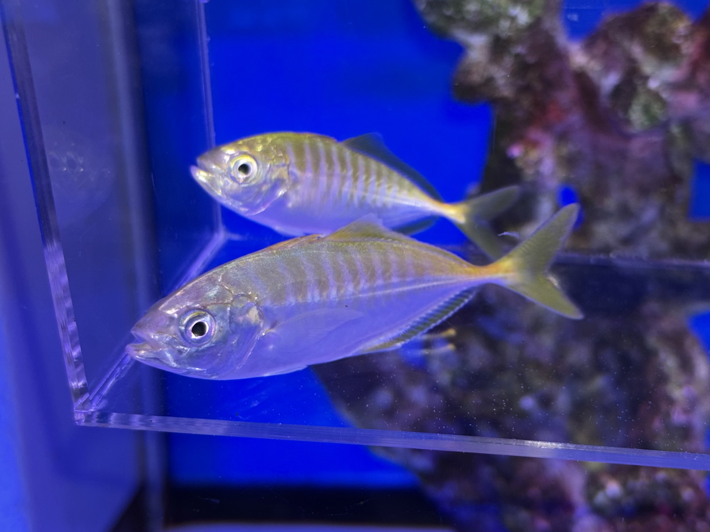 シマアジににていますが、ヒレが黄色いのと薄く体にライン模様が出るのが特徴です。