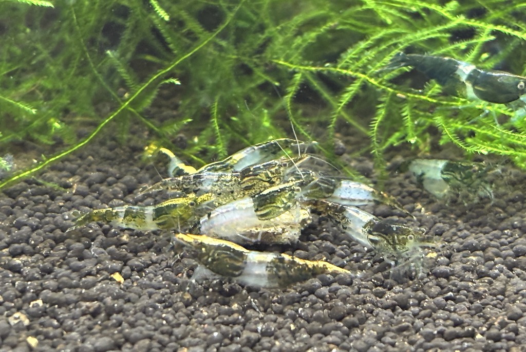濃い緑色と透明ボディのコントラストが綺麗なシュリンプ。