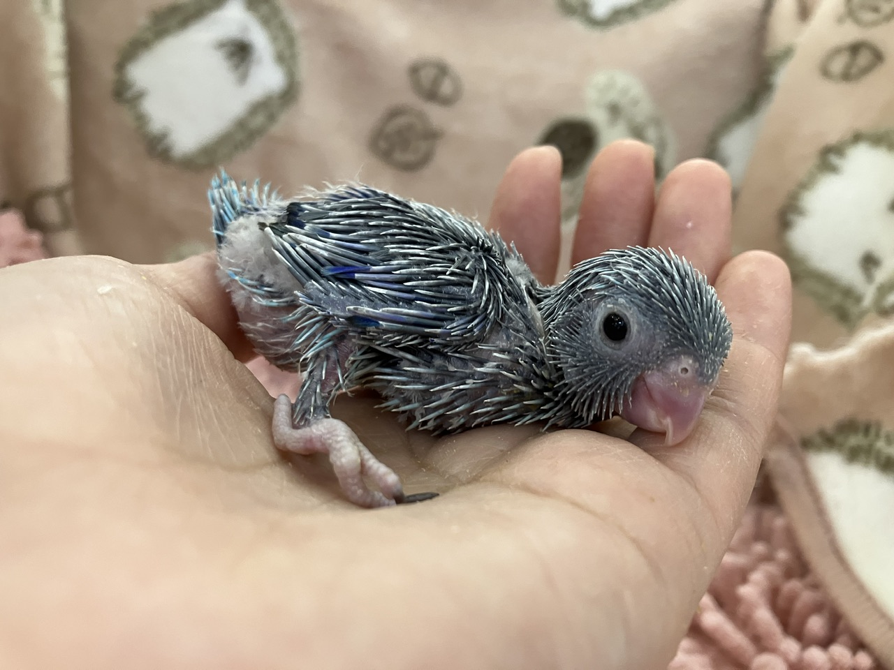 ブルーのマメは人気が高く、特にオスは顔と背中に瑠璃色のアクセントも入りインパクトもバツグンです🦜🩵