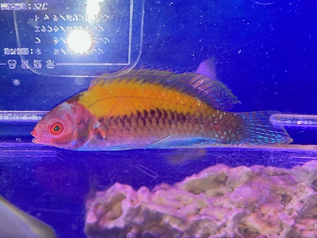 小さめサイズの可愛い個体が入荷してきました!ピンクと黄色のど派手な体色で人気なハナダイ!1匹のみ入荷です~