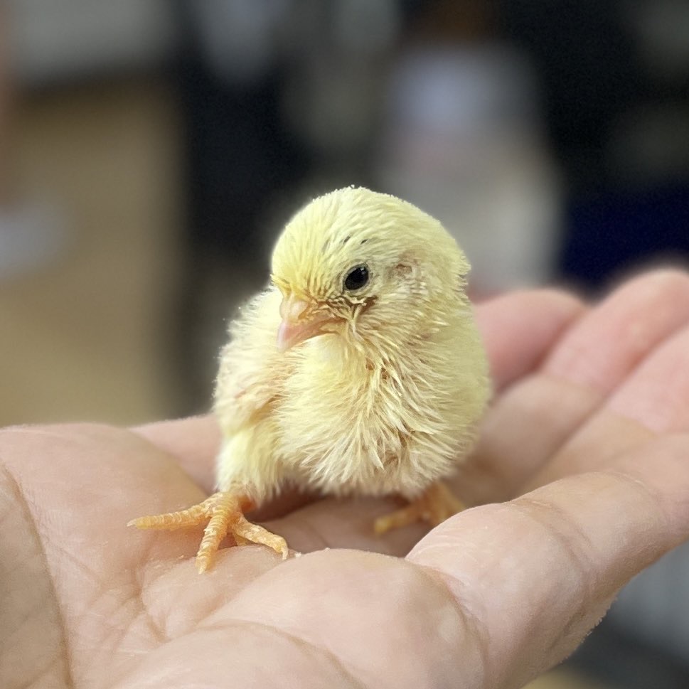 手のひらサイズのウズラのひよこともなると、それはもう小さいこと!!かわいらしい見た目ですが、顔つきは意外とワイルド系なのもギャップがあって良いですよね〜☺️