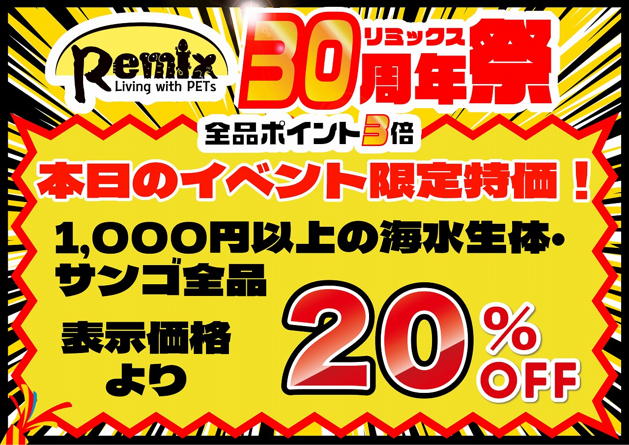また、1,000円以上の海水生体が20%OFFになるセールも開催!