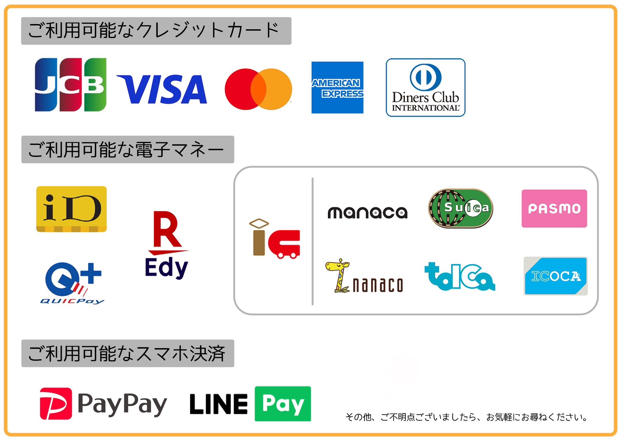 ↓会場の当店ブースで使える決済方法になります。現金も使用できます。↓