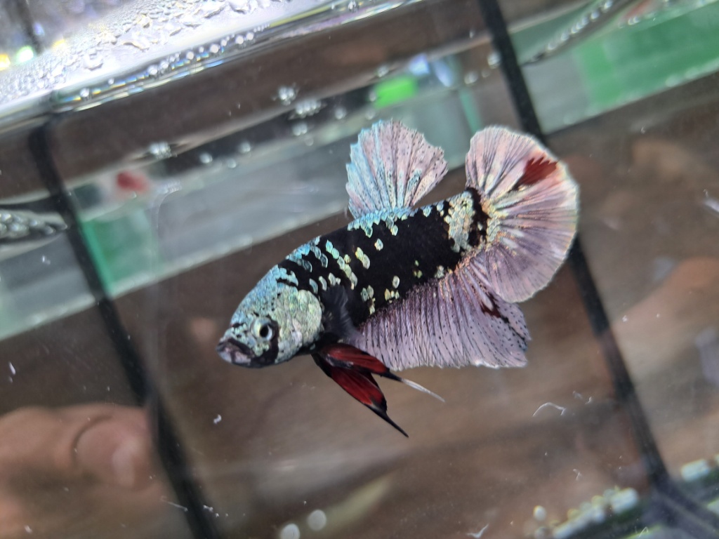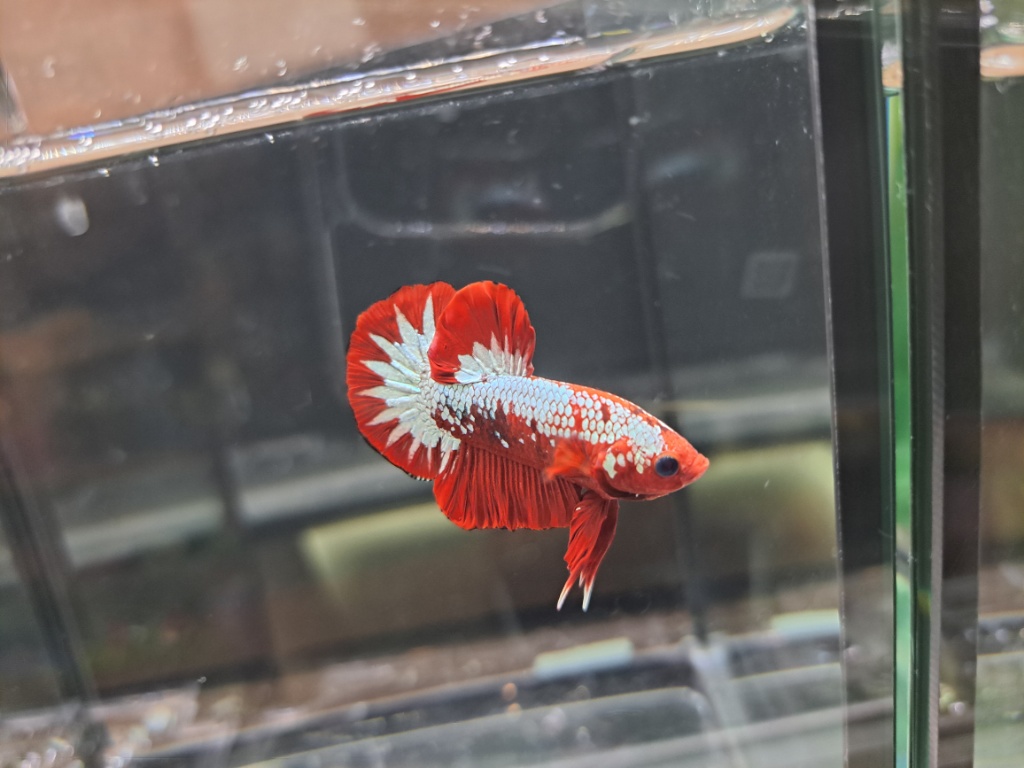 虎岩氏オススメのキングクラウンテール。6匹来ているので選べます。一般的な問屋さんのリストにはこのクラスのキングは載らないのでこれぞ専門店クオリティと言った感じです。鰭を広げた姿は見事です。ぜひ実物を見に来てください。