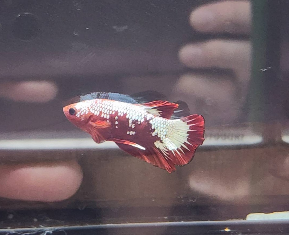特徴的な紅白のジャイアントプラカットです。こちらの個体、特徴的なカラーリングが目を引きますが見ていただきたいのは体型の美しさ。腹鰭が長くてフレアリングさせるとすごく映えます。
