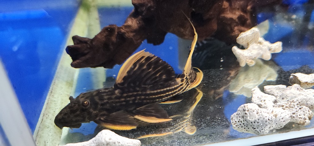 木の枝より細い入荷が多いイメージですが、今回大きなサイズがやってきました!これだけしっかりしていると最早別の魚に見えますね。ですが木や壁にひっつくのが好きなのは変わらず。
