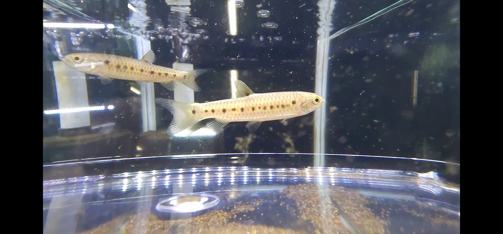 15~20cmほどの中型カラシン、入荷は非常に稀です。性格は中型カラシンらしく、喧嘩っ早いところあり。本日人工飼料をパクっとしたので懐き始めております。残り2匹。