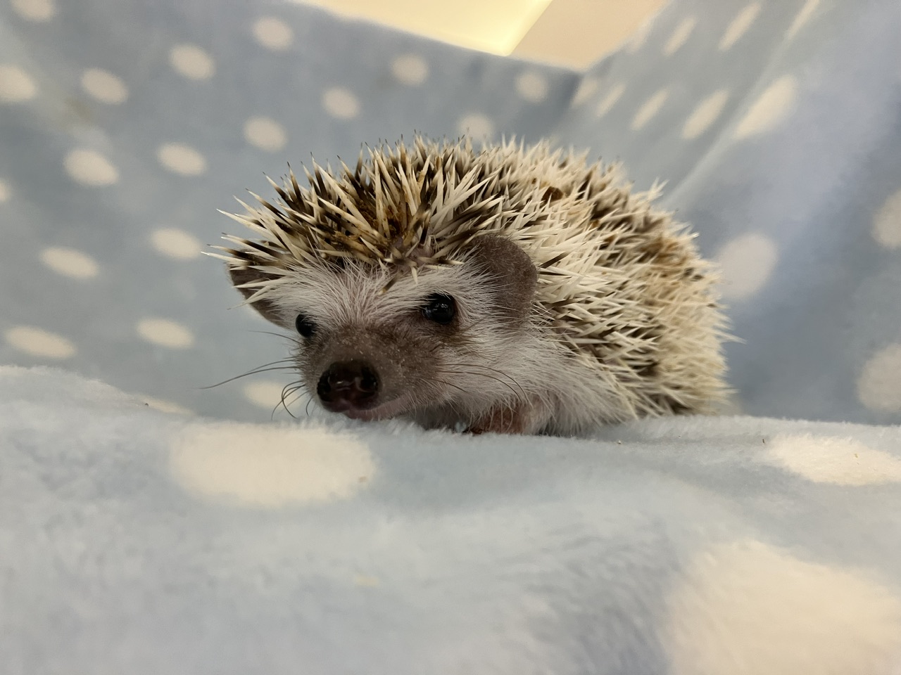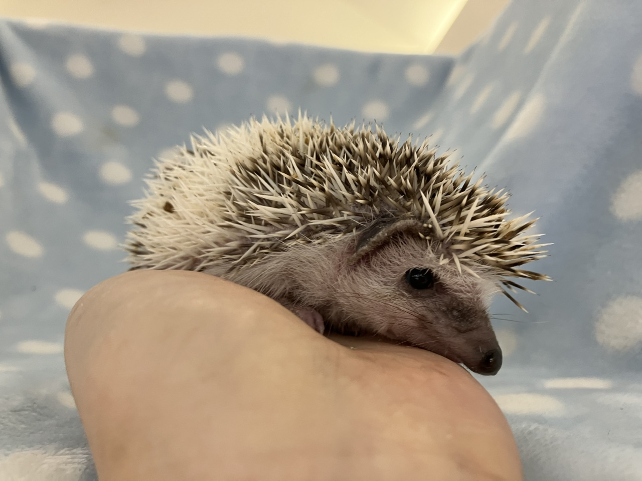 抱き上げる時も全くハリを立てないおとなしい子なので、触りなれてない方や小さなお子様もハリネズライフを堪能できるかと☺️✨