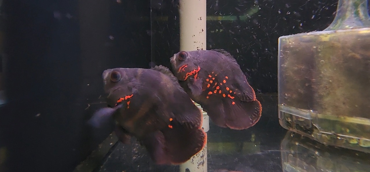 バルーンときたら今この子を紹介しないわけにはいきません。シクリッドの中でも1,2を争う有名種、オスカーのバルーン個体です。それもただのバルーンではありません、写真の通り真ん丸個体。通常のバルーンは大きくなると通常個体とあまり差を感じづらいですが、これは大きくなっても丸いのではないでしょうか。ちょっとふてぶてしい顔がまた愛嬌あってたまりません。