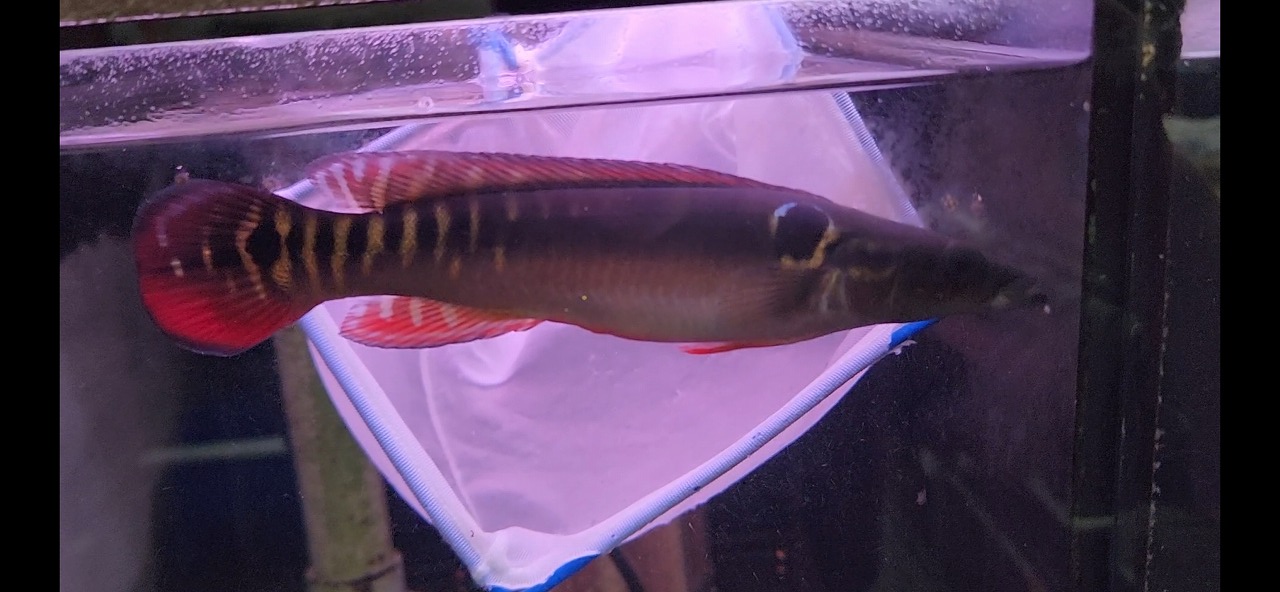 チョコレートシクリッドと呼ばれる魚は主に2種類おりますが、こちらは天ポラリスと呼ばれるタイプ。より赤みが強くワインレッドのような色合いになります。他のシクリッドより派手な体色ではありませんが、飼い込むとにじみ出る独特の体色は、混泳に入れておきたい1匹です。