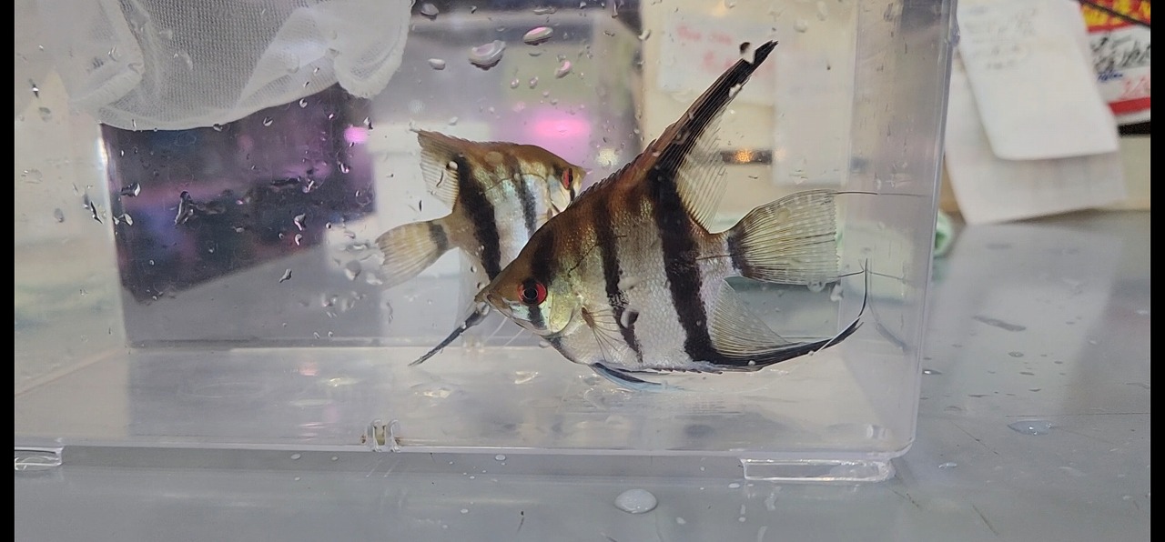 シクリッドといえば外せないのがエンゼルフィッシュ。これまで紹介した魚たちとは全く違う、この特有の体形でもシクリッドの仲間です。名前の通り背中のほうに赤みの差すエンゼル。背高の水槽で是非飼ってみてください!