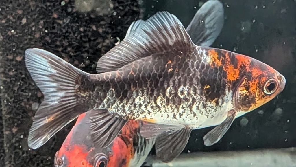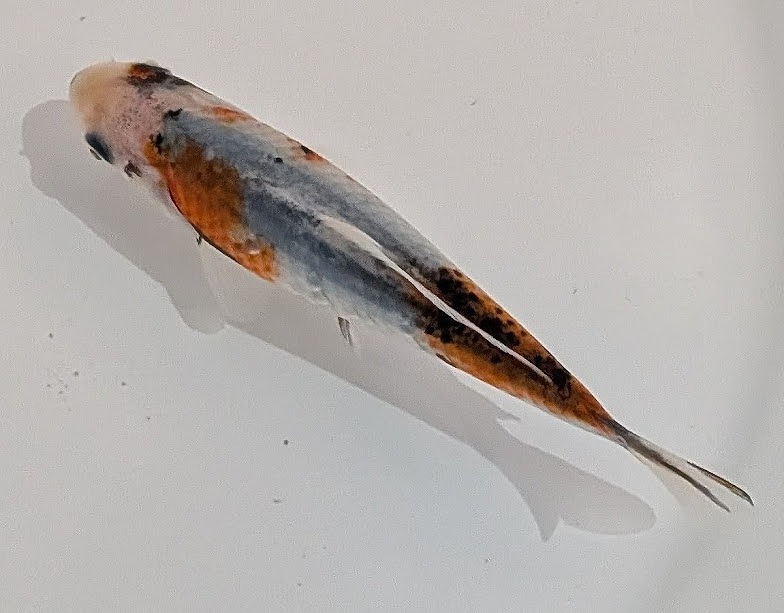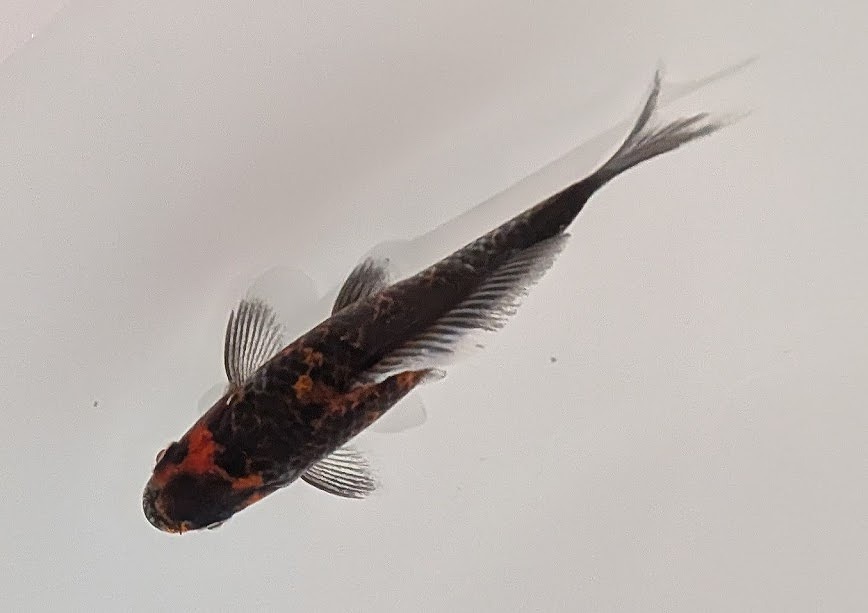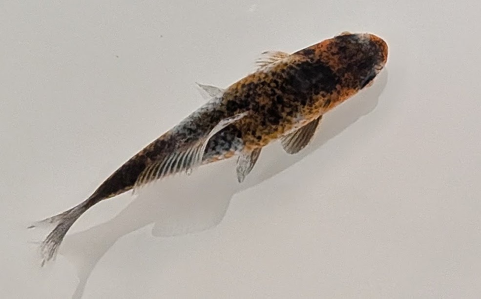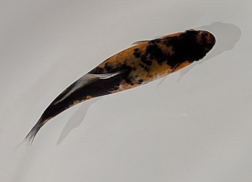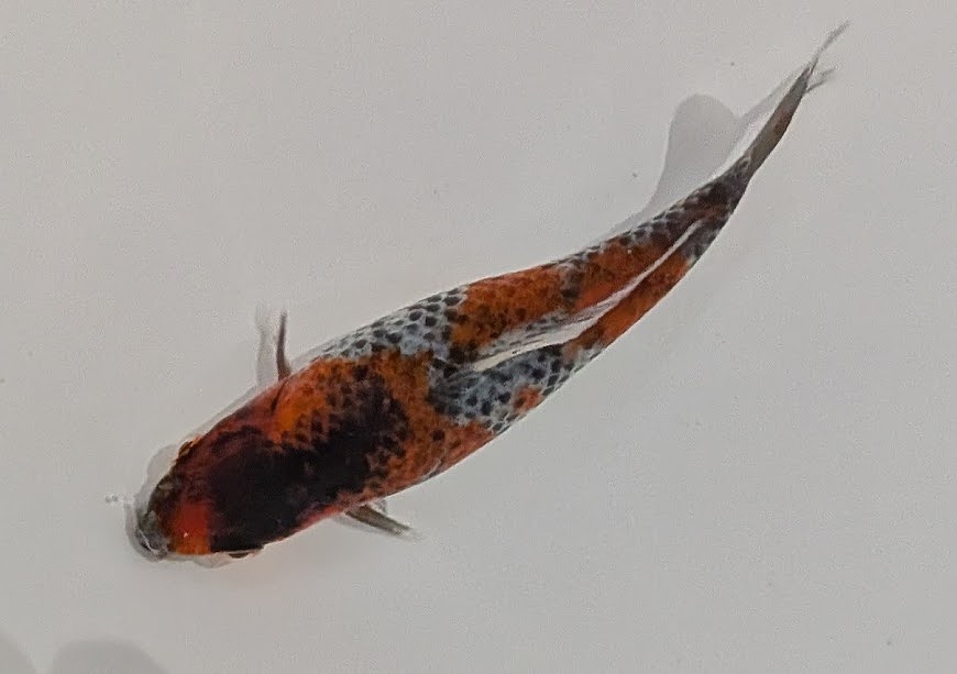 まだまだ成長途中の小ぶりな当歳魚。濃い目の墨色に白地の銀鱗が美しく、墨内に有る緋色の出方次第になりますが、変化を愉しめる個体です。