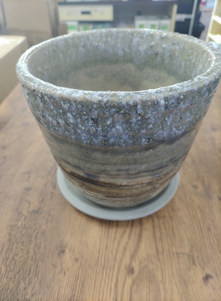 今回の信楽焼は1点物が少しとグレー系の何の植物にも合わせやすい物を選んできました。