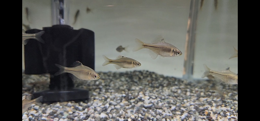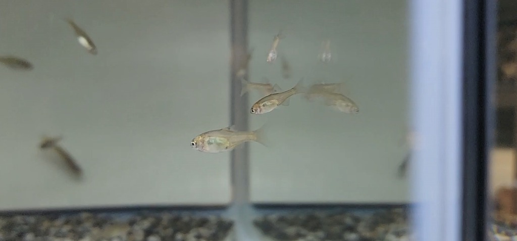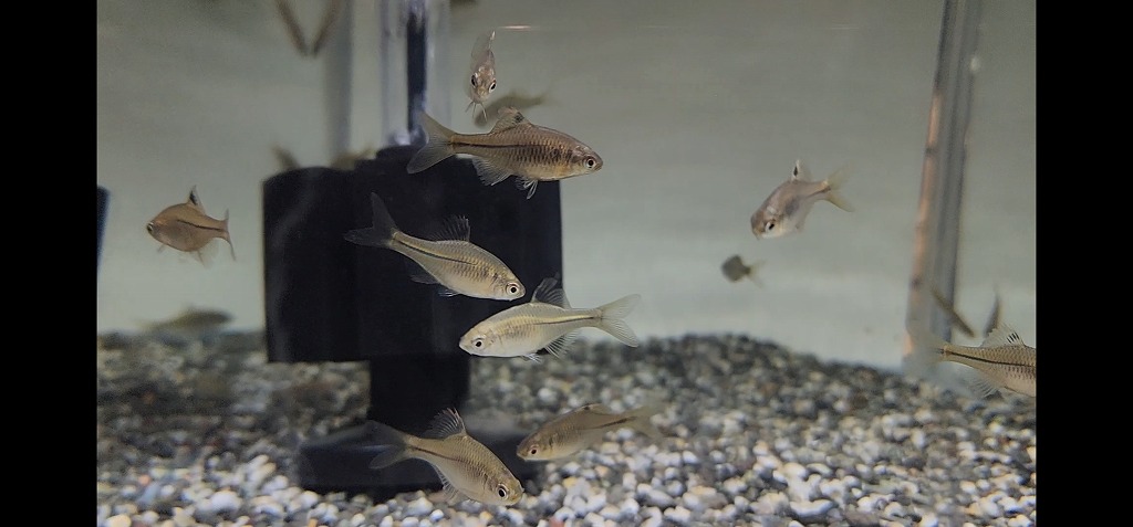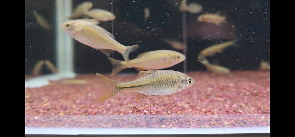 こちらは2歳になったミナミアカヒレの石川県血統、ようやくヒレに赤みが見えてきた個体がちらほらといったサイズです。