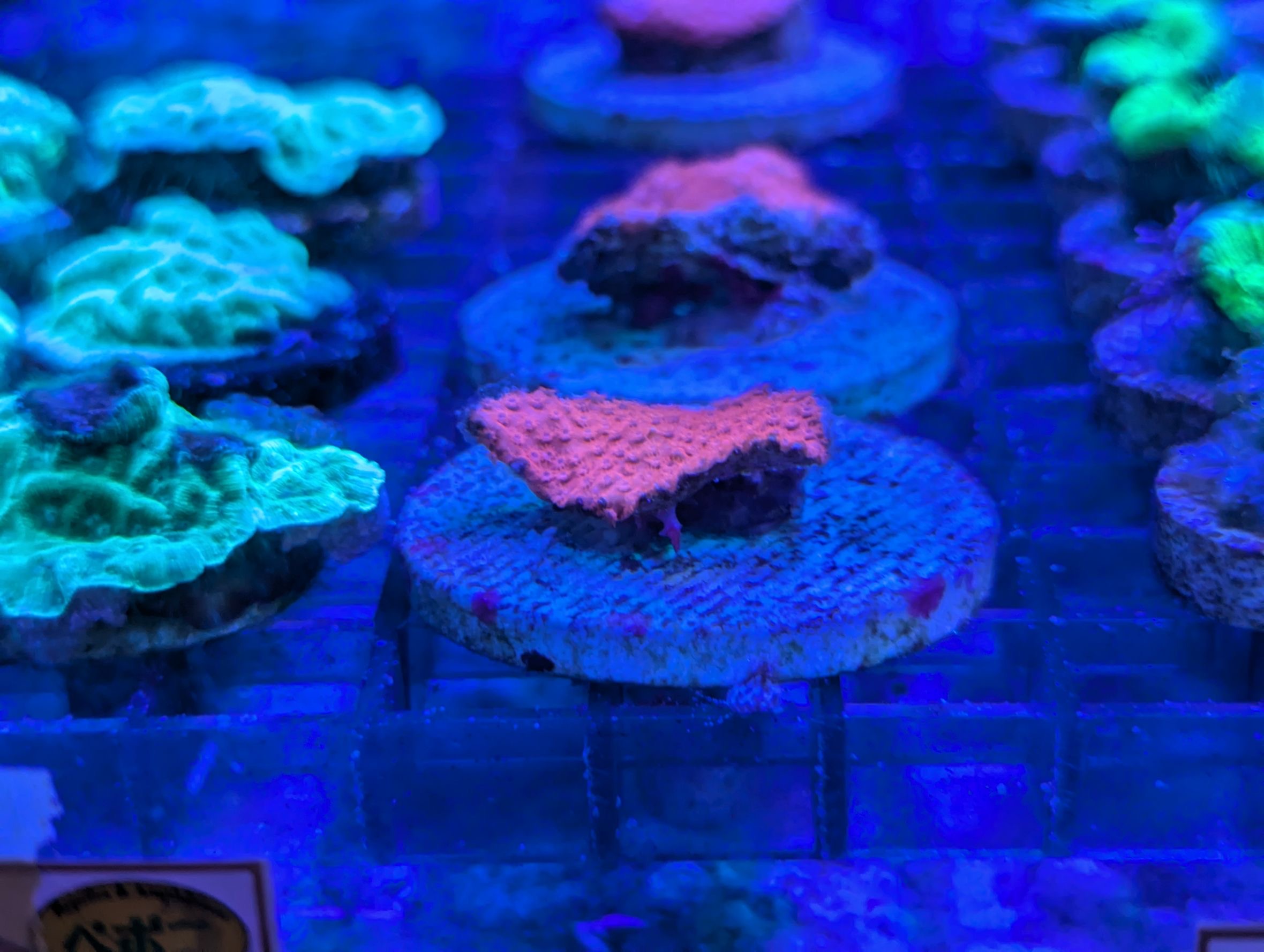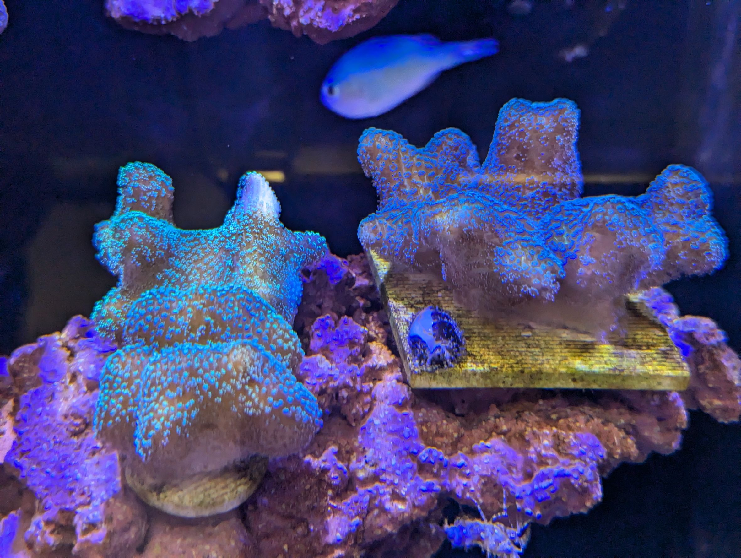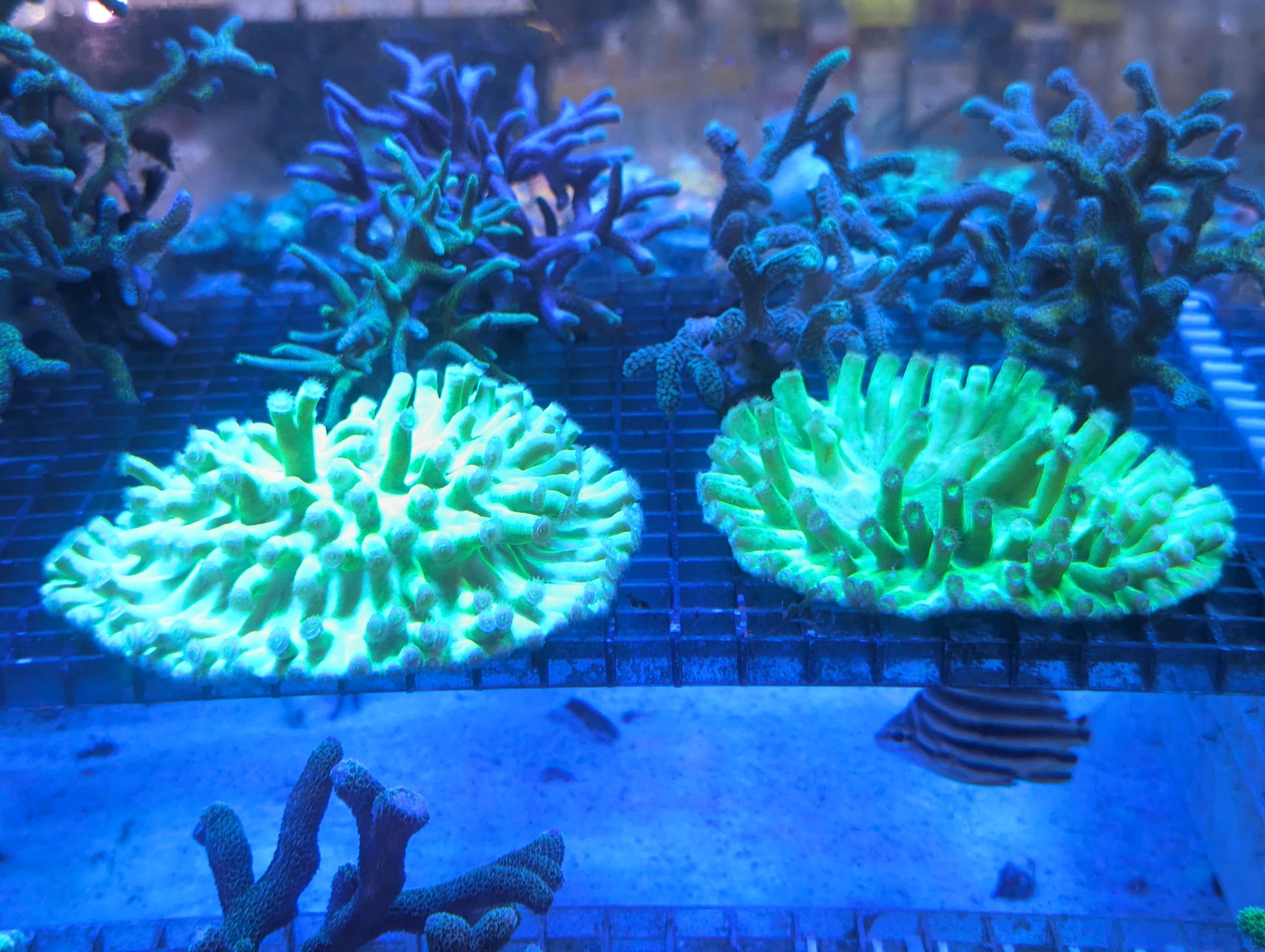 1枚目の個体は、同じフラグに2色のサンゴが同居してます。