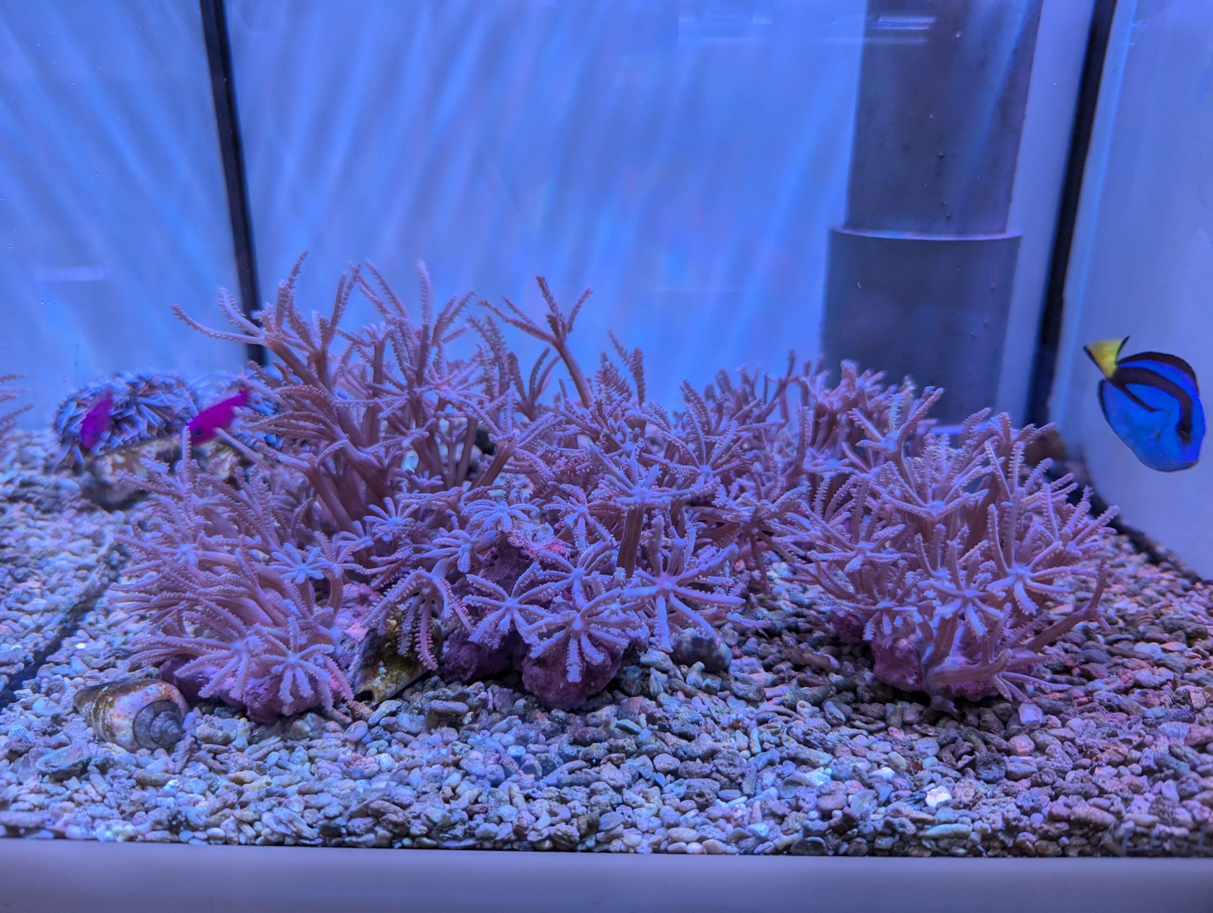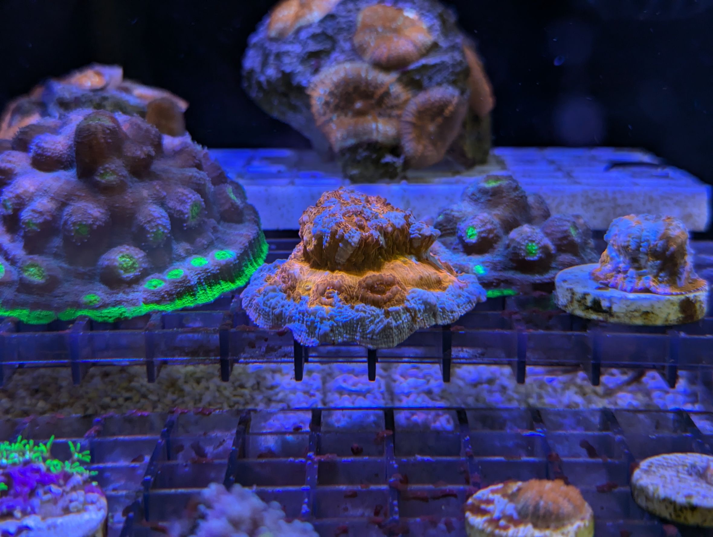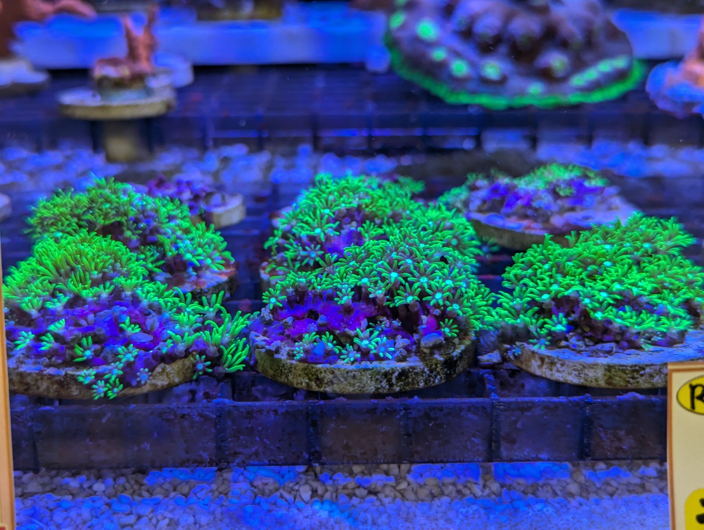1枚目の個体は、同じフラグに2色のサンゴが同居してます。