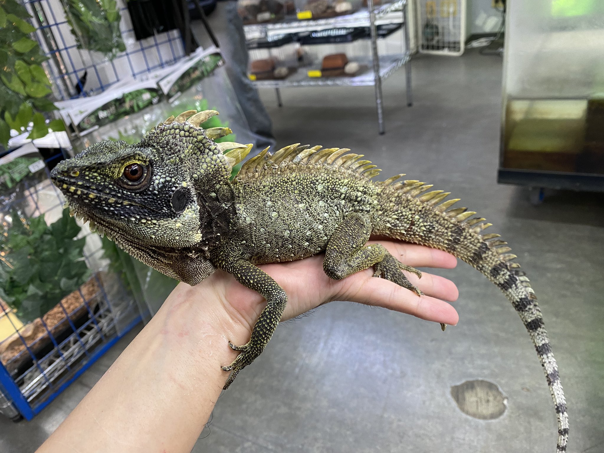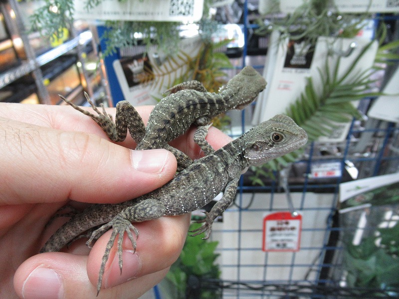 不動の人気なオージーエリマキ。今年のベビーが来てます。成長すると白黒モノトーンの配色に大きなフリルが抜群に格好良くなります。いっとき入手難な時期もありましたが昨年辺りからちょこちょこ来てくれて嬉しい限り。つぶらな瞳とエサを咀嚼する時にパタパタ動く襟がなんとも可愛い。なんとなく店舗よりも毎回各地のイベントで人気な印象。このあとのイベントでのリクエストもお待ちしてます!