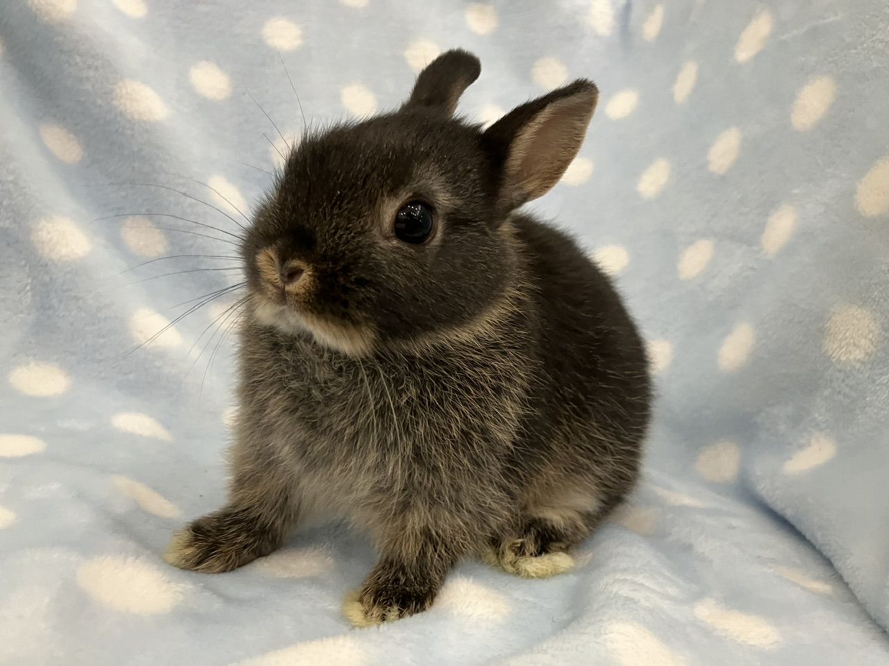 1匹のみですが、ロップにはやや珍しいブルートート♪♪グレーとベージュのグラデーションがいい味出してます🌟顔周りにうっすら入ったグレー模様のおかげでほっぺがふっくらして見えるのも👍✨
