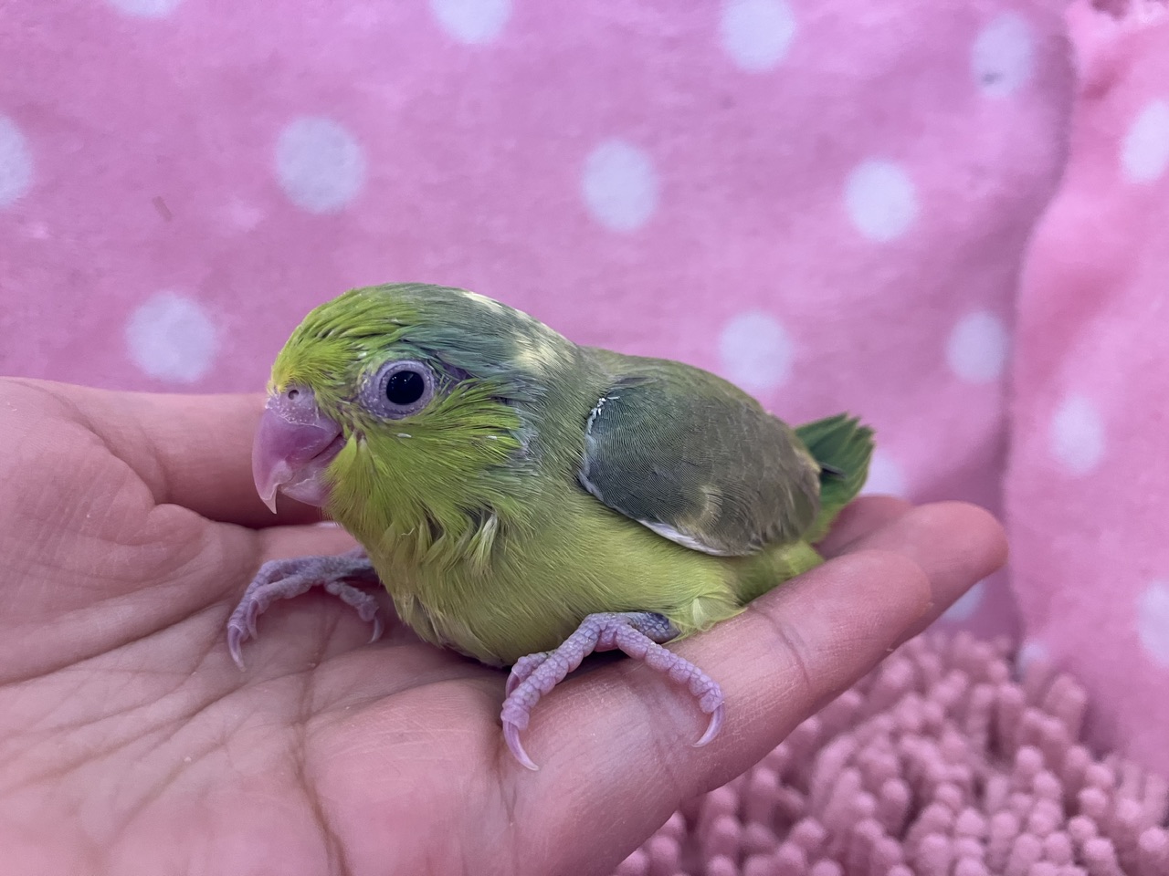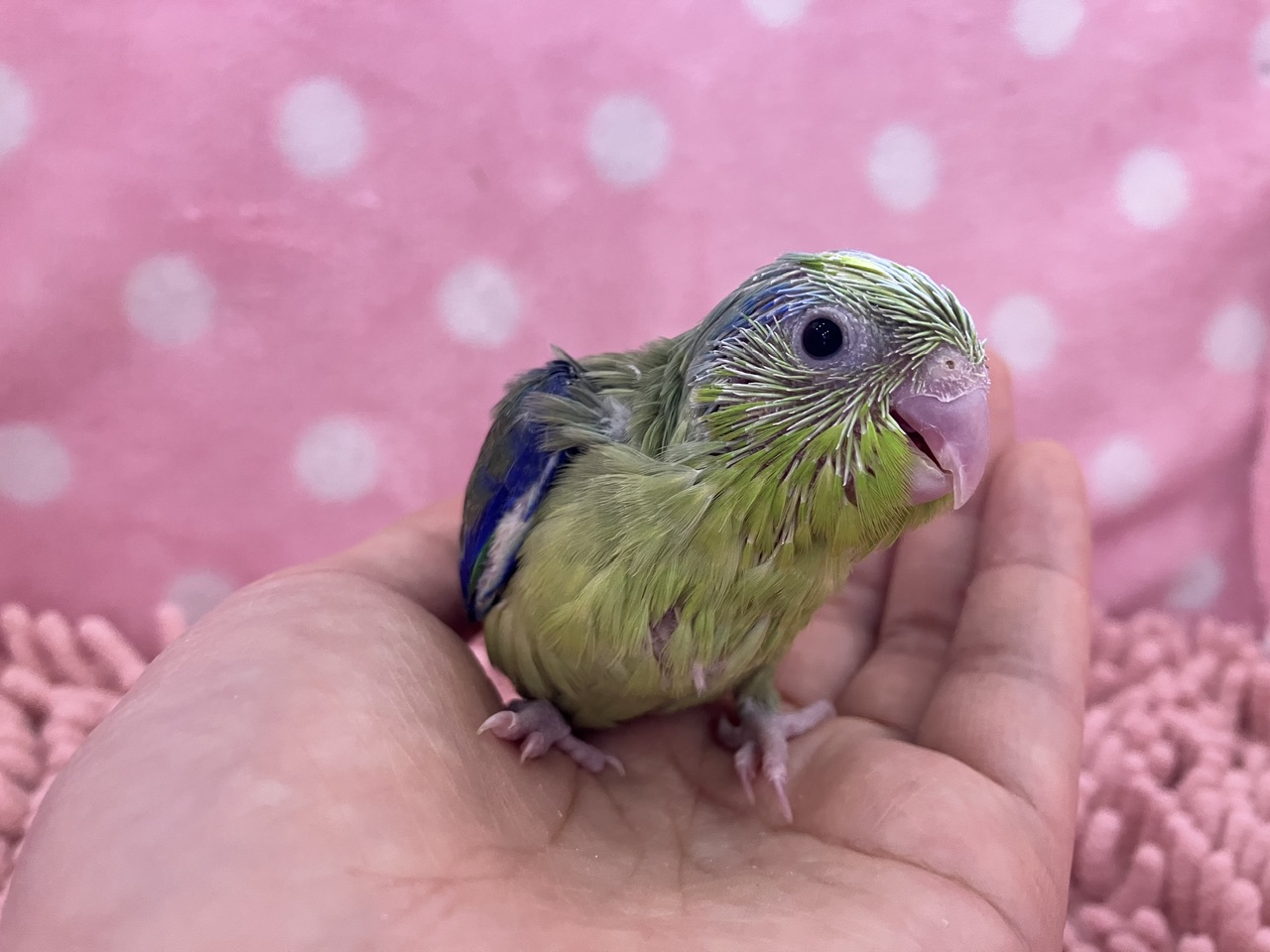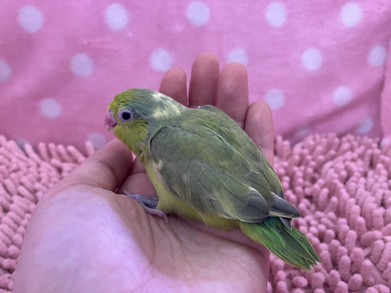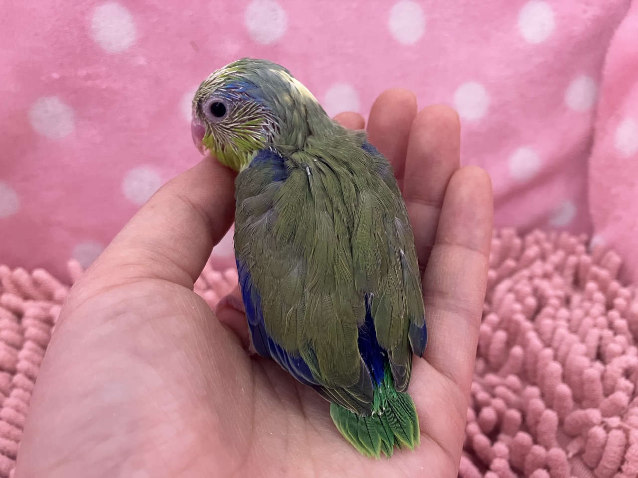 今回来たのは超久々のパイド♪♪がっつり柄が入る感じではなく、後頭部にちらほらとゴマ粒が散らばったような模様となっております🫘🦜