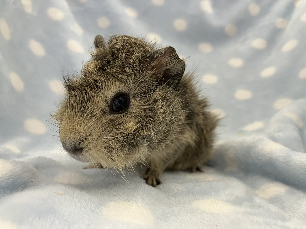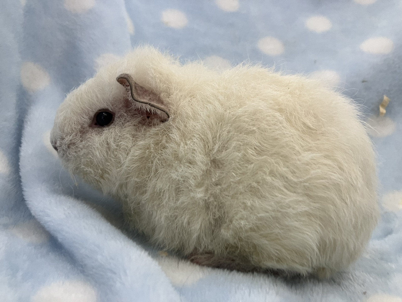 チリチリに縮れた短毛がパーツの丸さをより際立たせる、モルモット界のテディベアです🧸✨