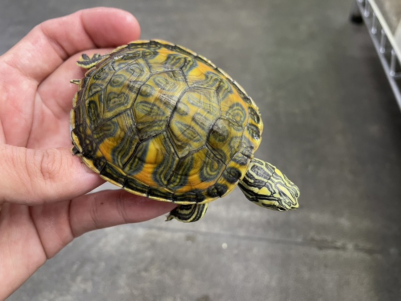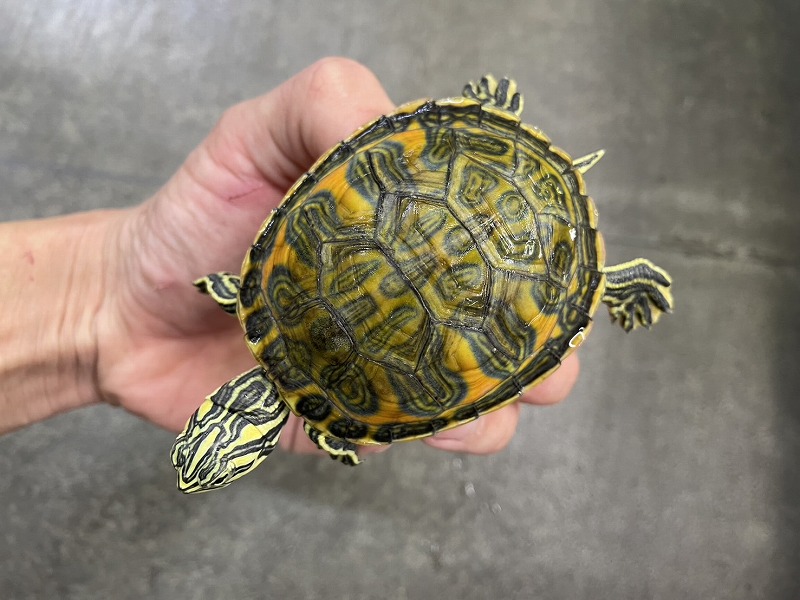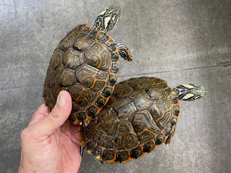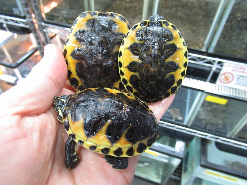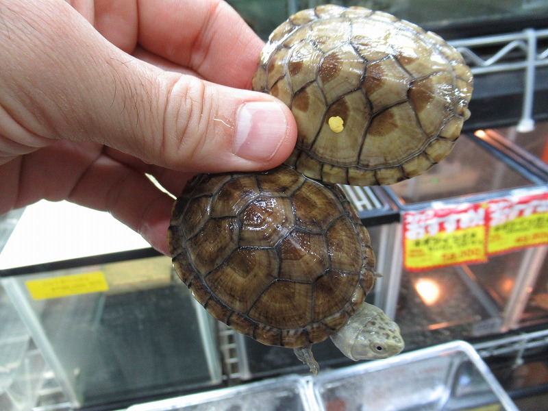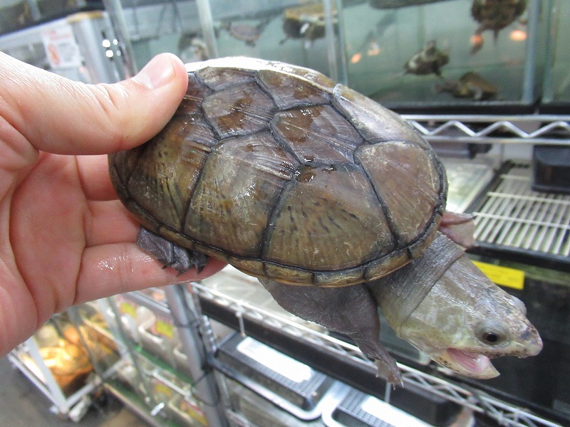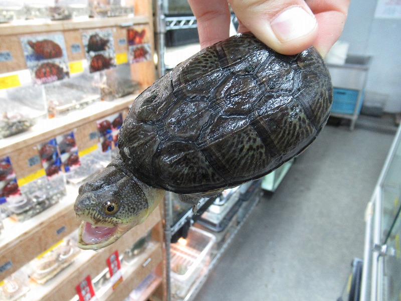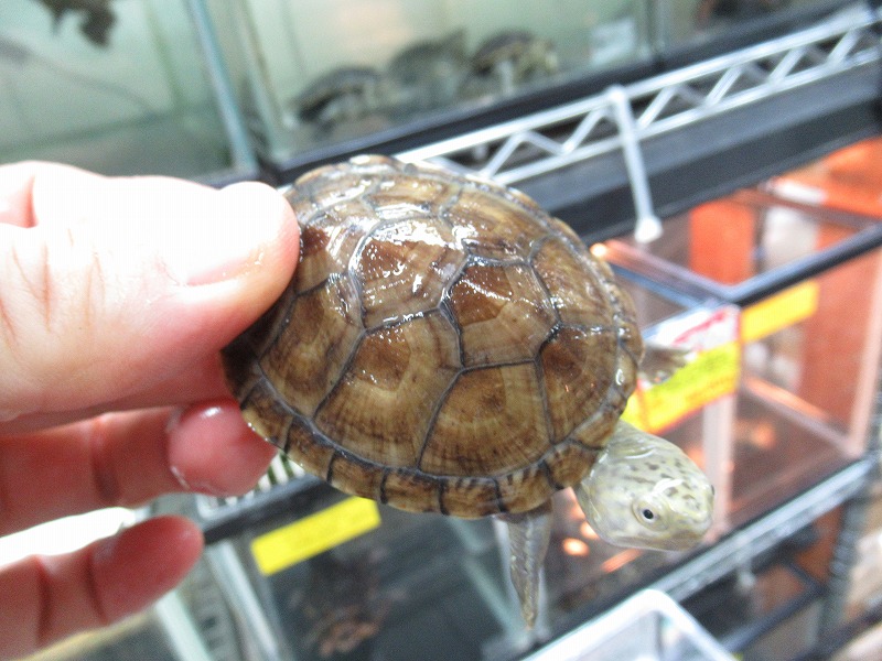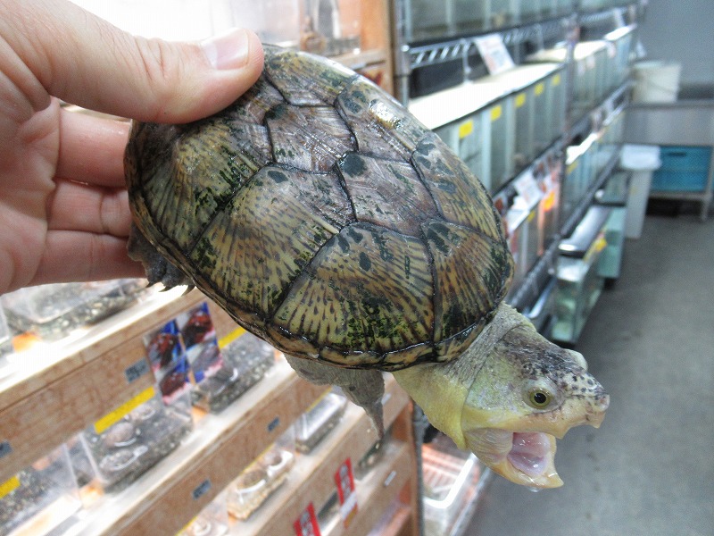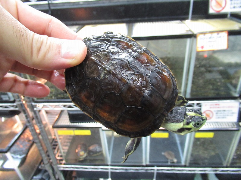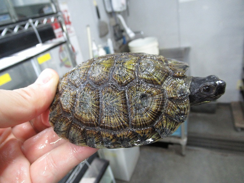 ミシシッピニオイガメと並ぶこの仲間の入門種的存在。初めてミズガメを飼育される方にもオススメ。コチラも国内CB。分厚い頭が迫力満点の成体も在庫あります。