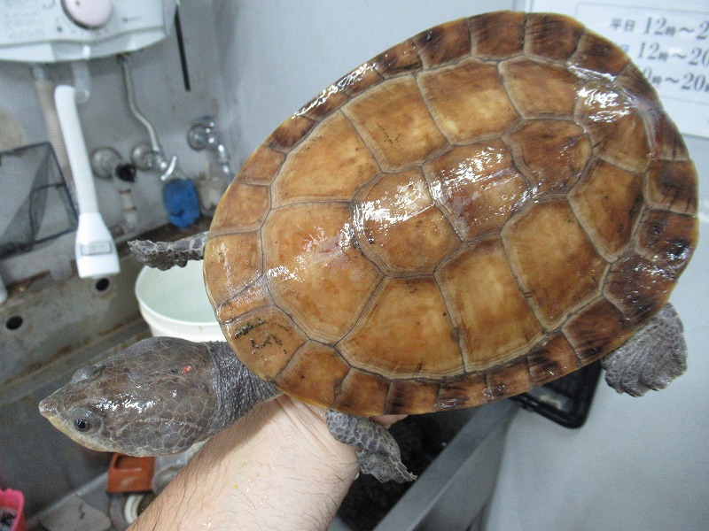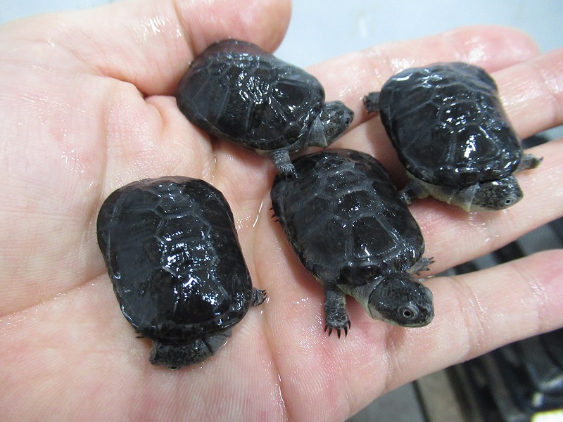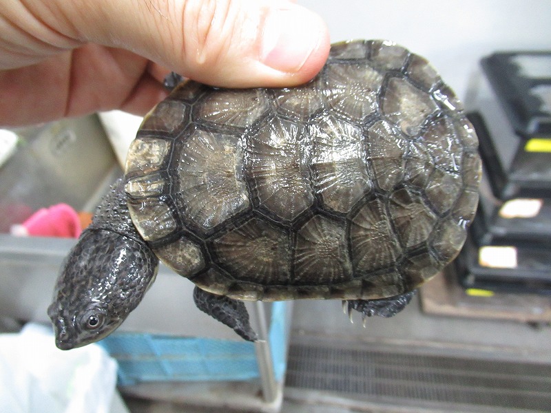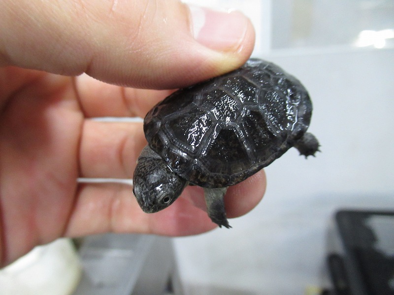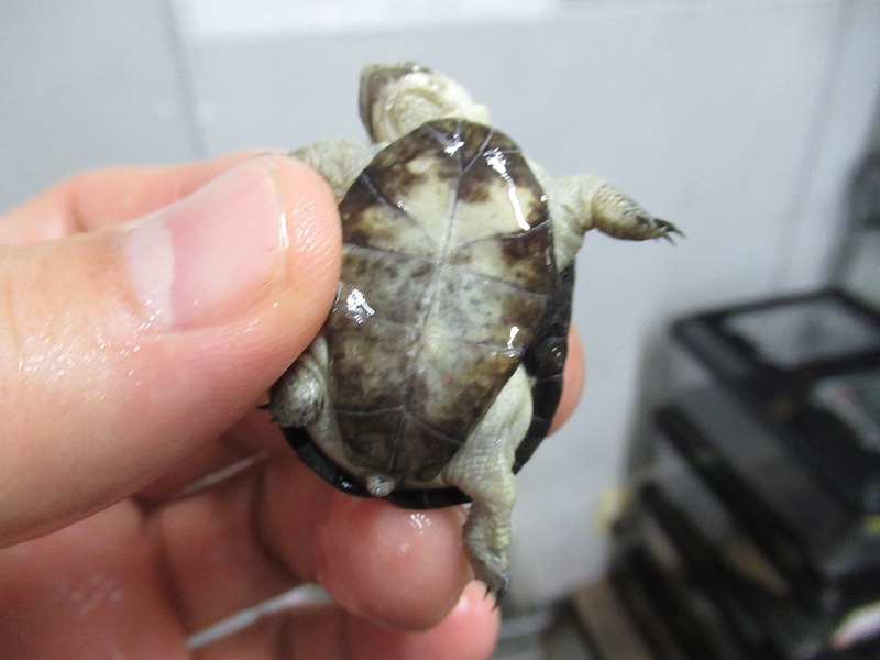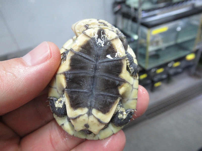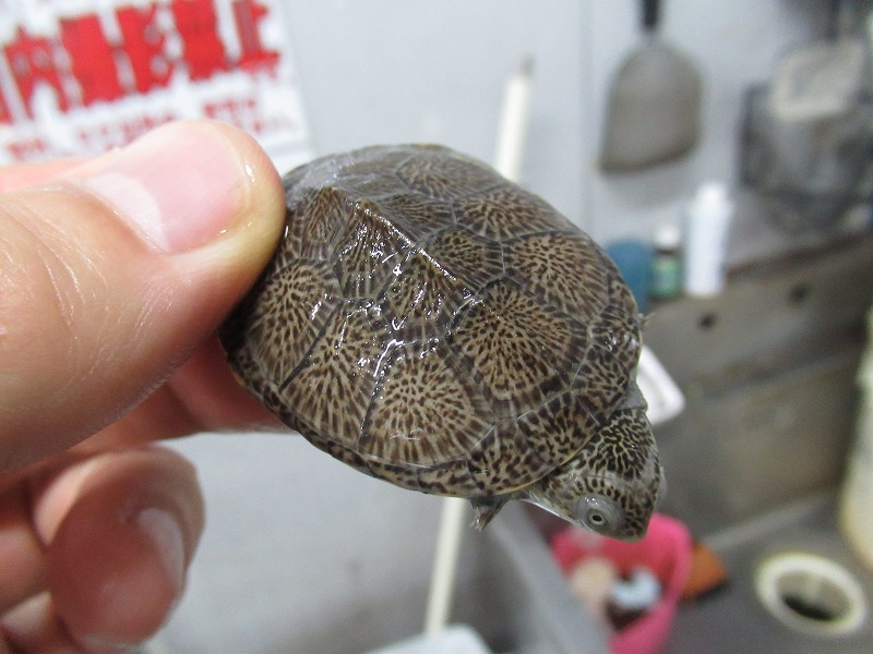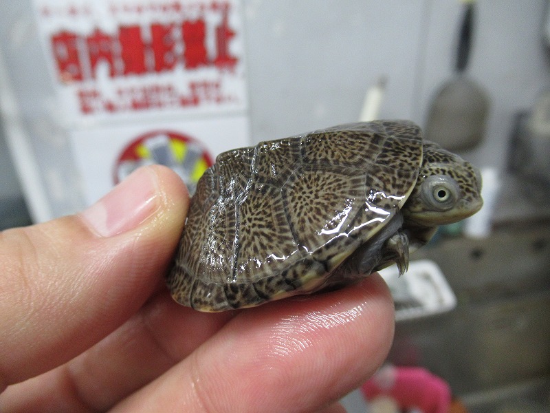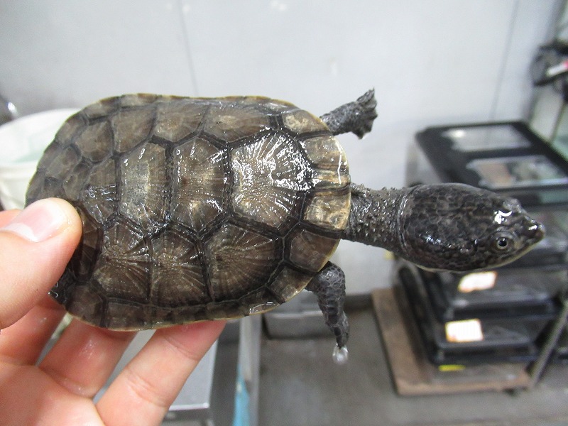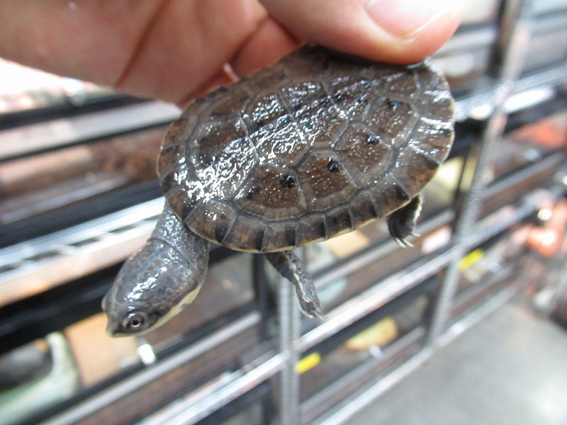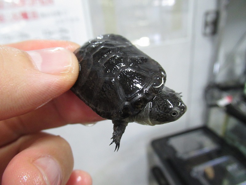 遂に来た!10年振りの登場!!過去に数回扱った個体は全てアダルトだったのでベビーサイズが来るのは初めて。いざ実物を見て、近いとされるコシヒロにphrynops属を混ぜたような独特な雰囲気。昔見た成体は真っ黒な甲羅と頭部にマス目のようにしっかりと筋が入りなんとなく不気味な雰囲気が漂っていたのを覚えています。あのオーラが出るまでどのくらいの年数がかかるか分かりませんがじっくり飼い込んで格好良く仕上げて下さい。