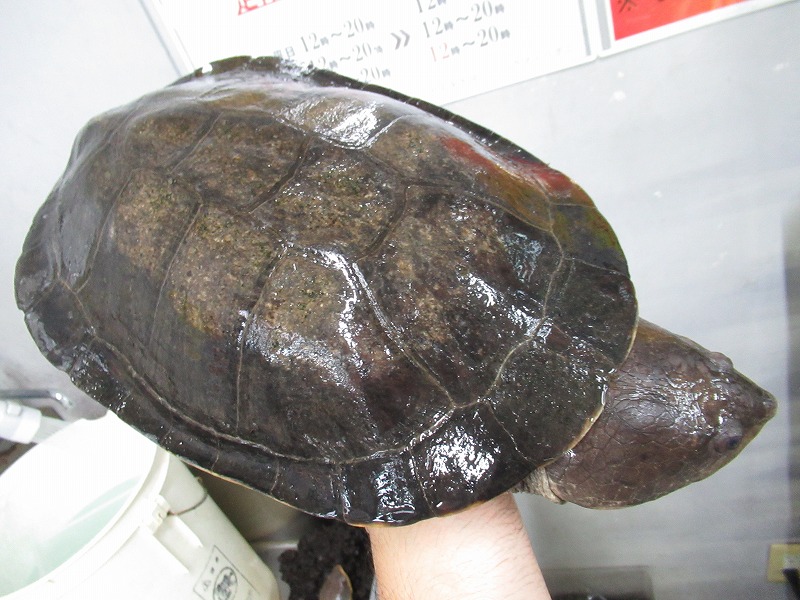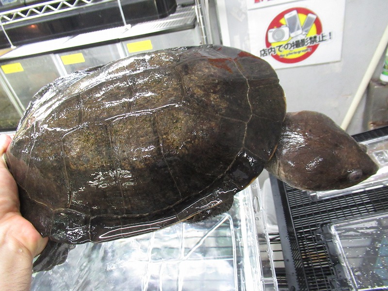 ナスタも超久々に巨大個体が来ました!片手で持ち上げるのもギリギリな重量級の個体。巨頭系カエルガメだけあってこのクラスになると頭部もはち切れそうなほど膨れ上がってます。水槽内で呼吸のため頭を持ち上げた時が素晴らしくイイです。そうそう来ないサイズですのでスペースが確保出来る方はお見逃し無く!