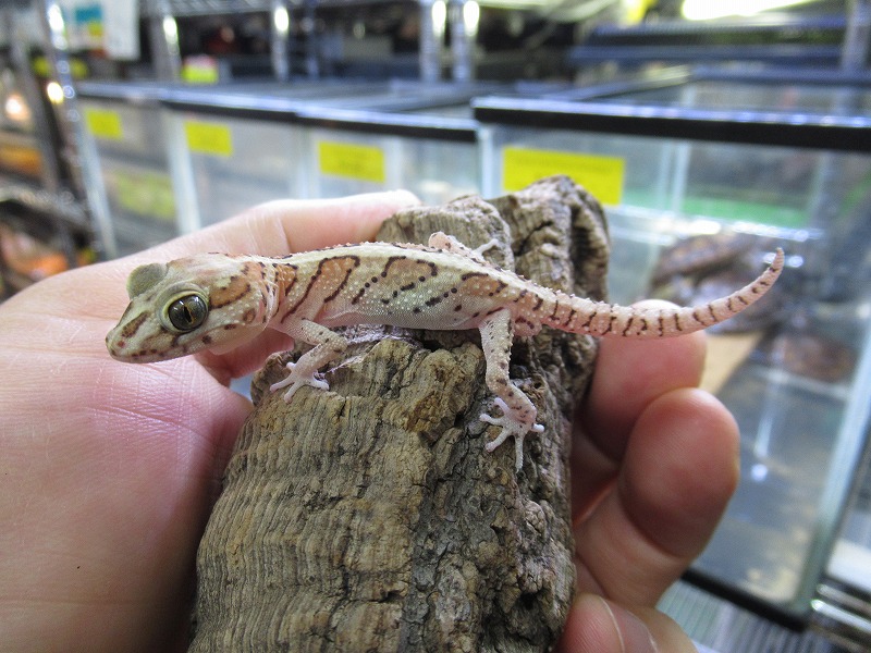 大きめの頭部とゴツゴツした感じが格好良い中型ササクレヤモリ。基本的にはソメワケ同様ですが不意にダッシュします。今回は国内CBと現地便が来てます。ペアもOK。