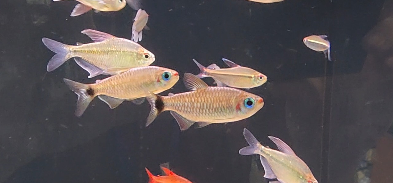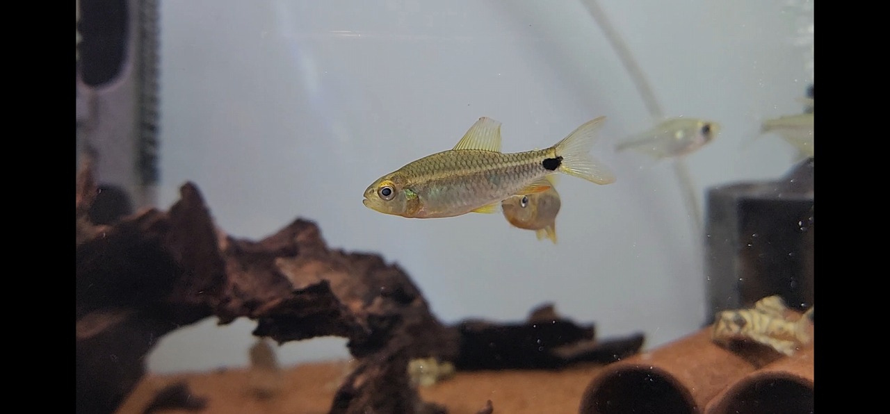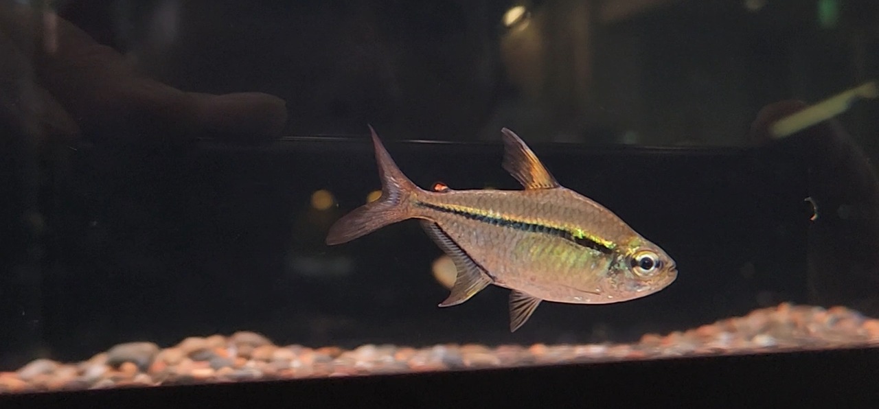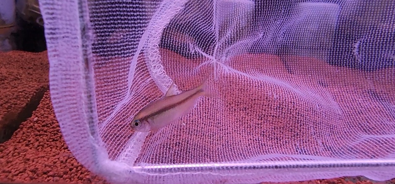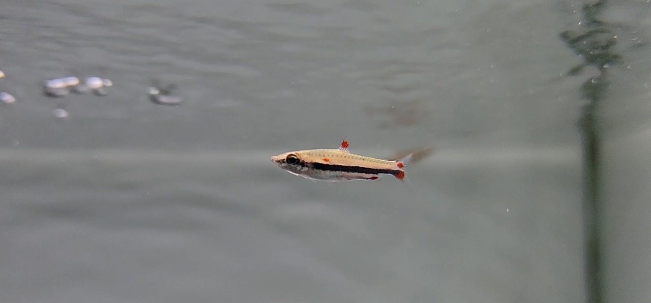 小型種の中でも美カラシンとして人気のある本種。よく見ると思いきや、いない時はおりません。小型水槽のおともに。